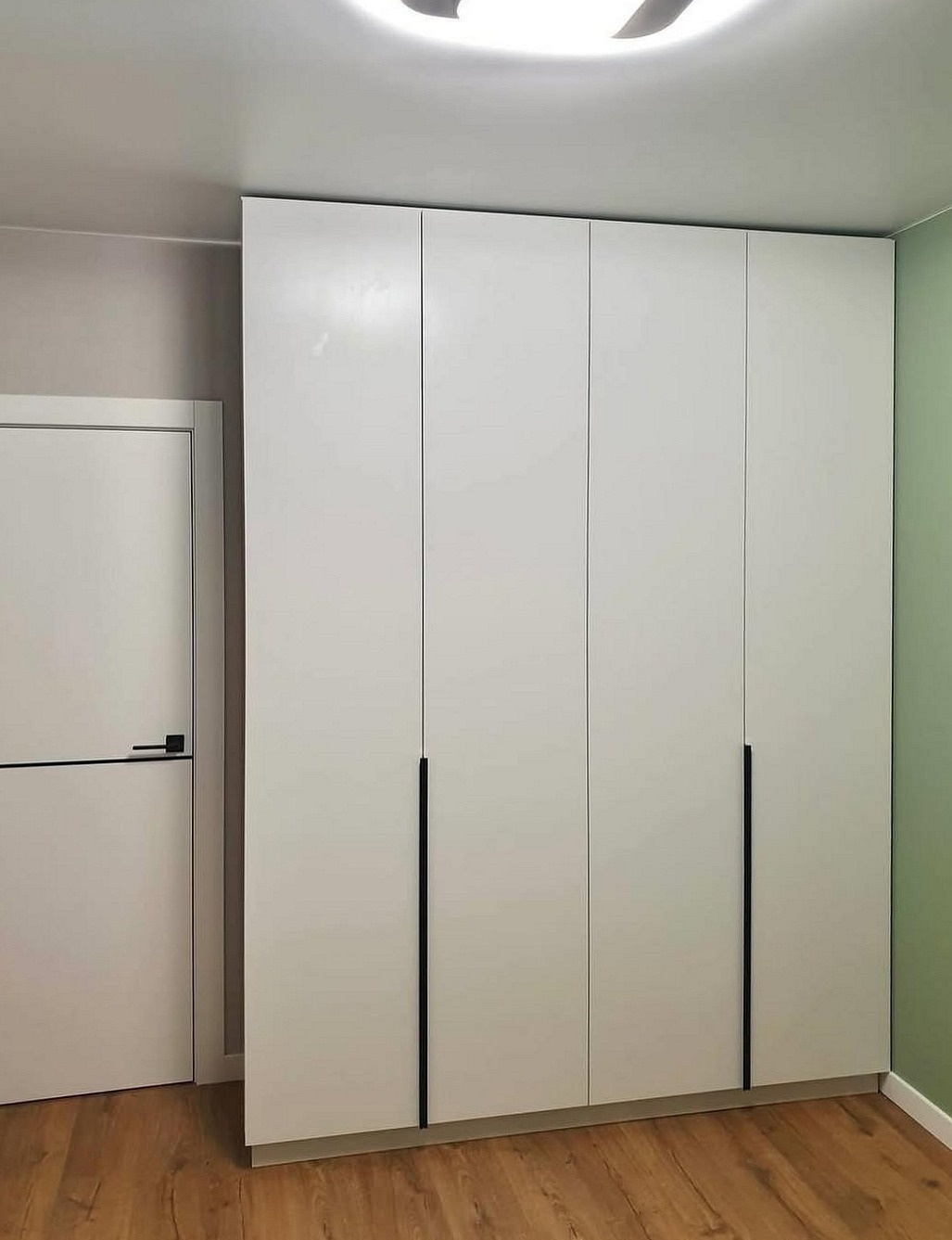Белый 4х дверный шкаф под потолок в минимализме «Модель 330»