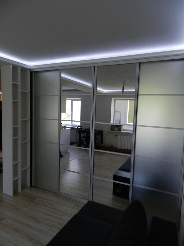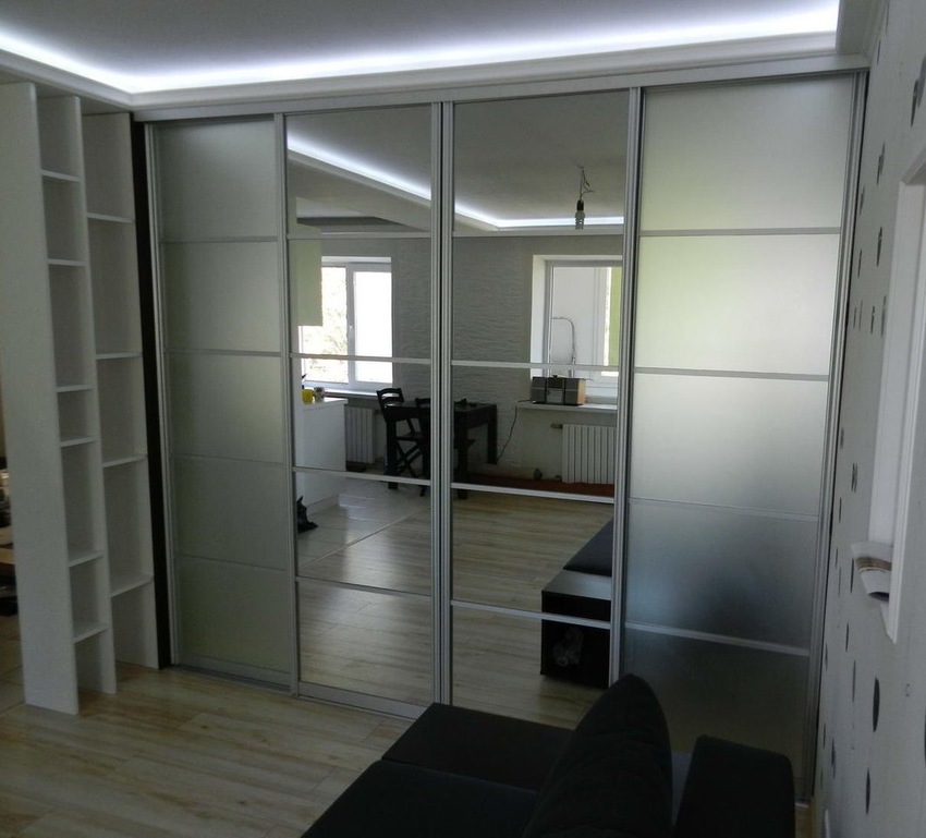 Четырехдверный шкаф-купе из стекла с Oracal «Модель 168»