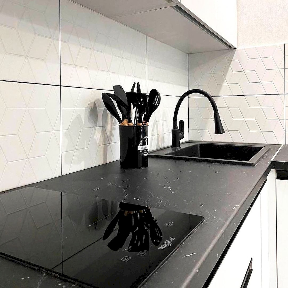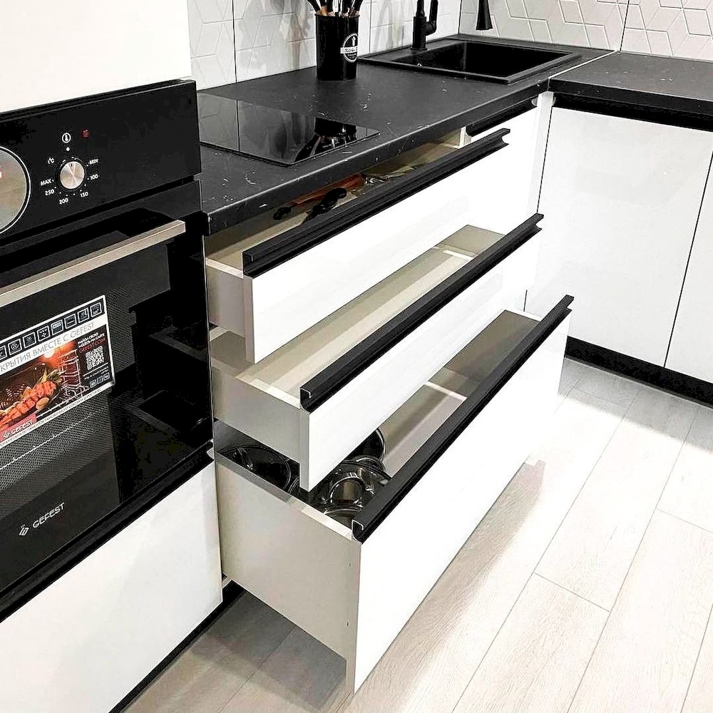 Белая кухня с черной столешницей «Модель 614»