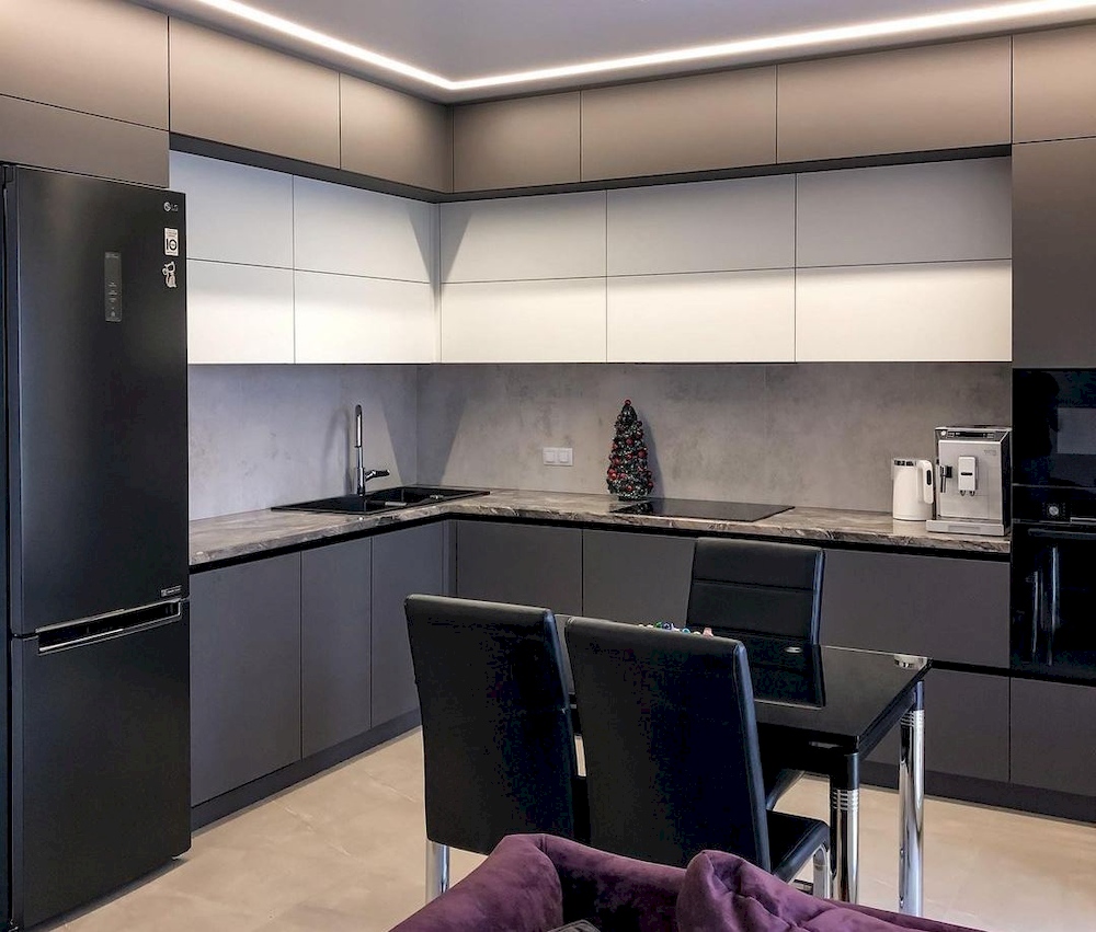 Глянцевая кухня с каменной столешницей «Модель 900»