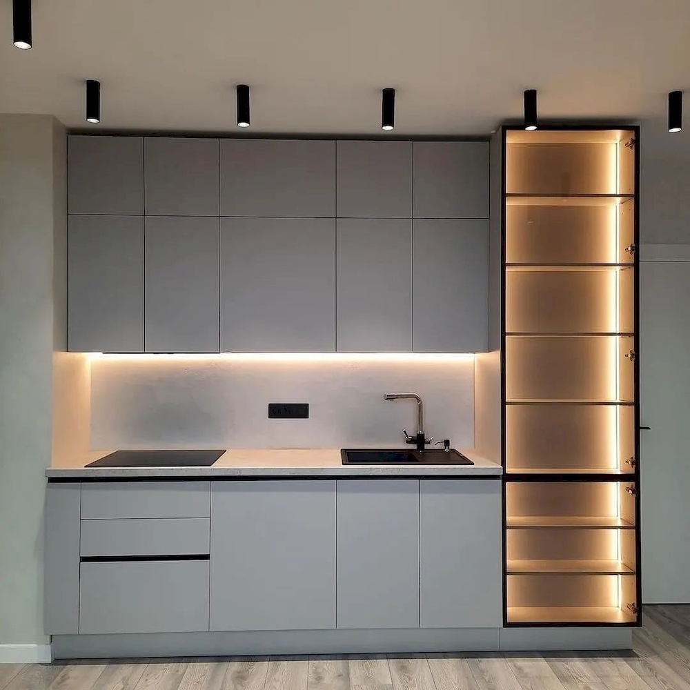 Шкаф с со стеклянными дверями в чёрном профиле с подсветкой «Модель 10»