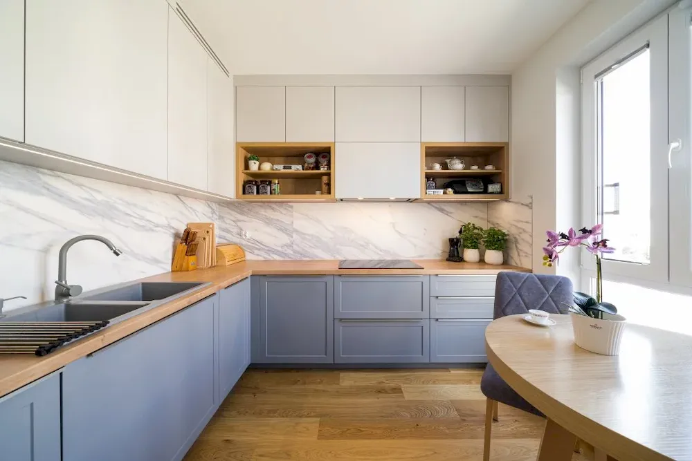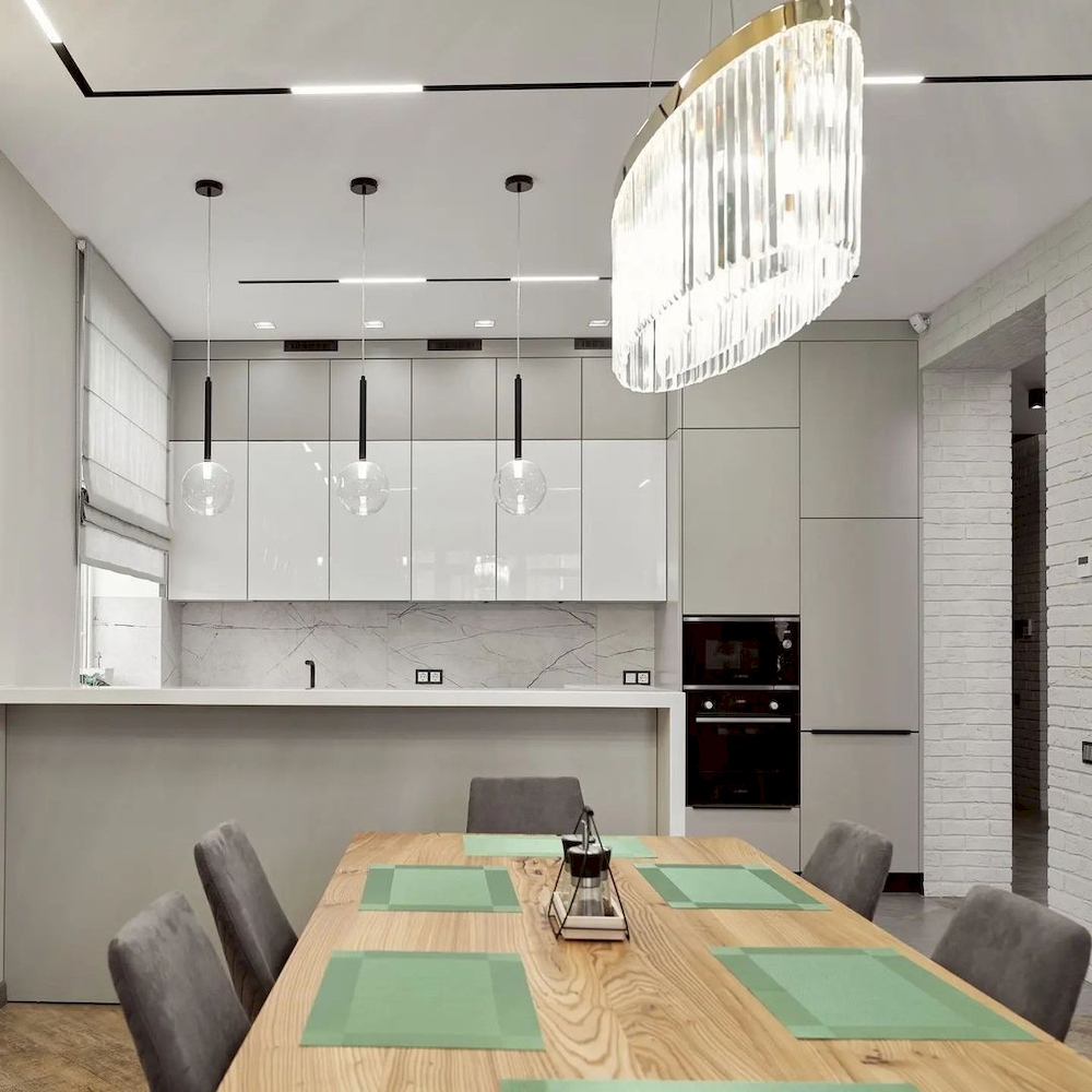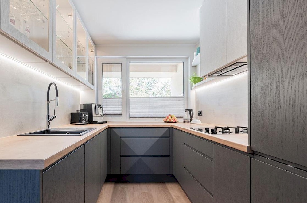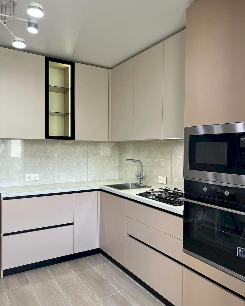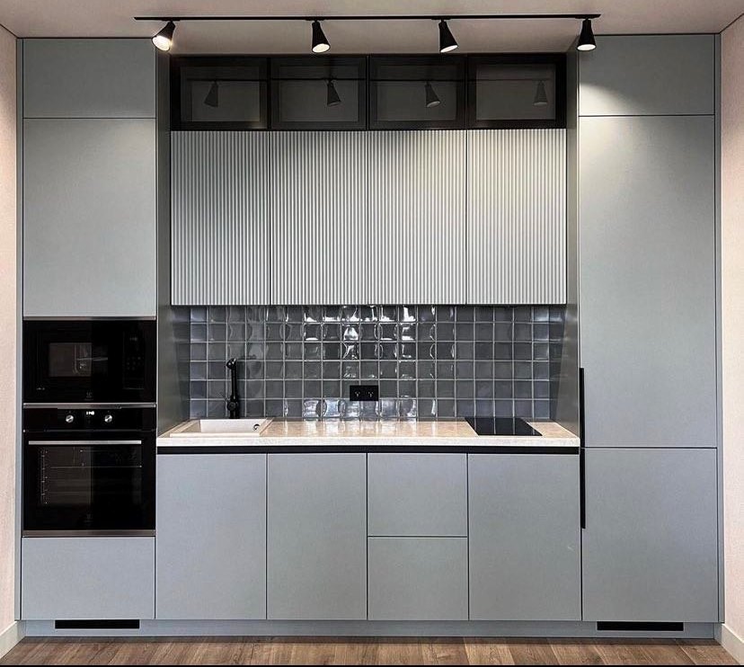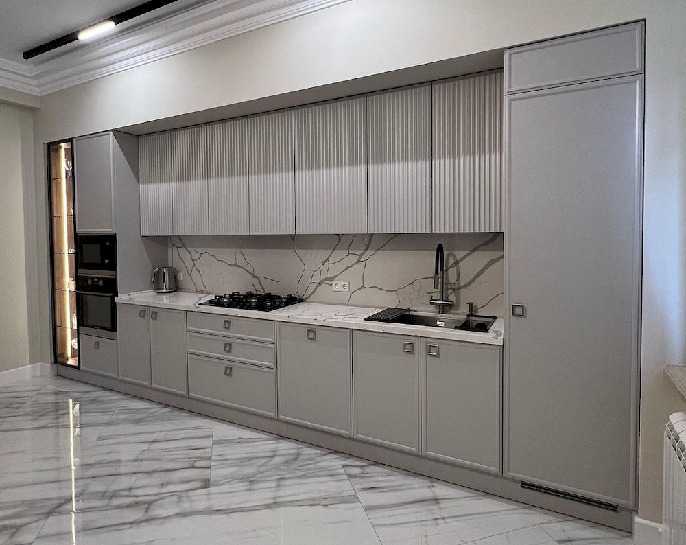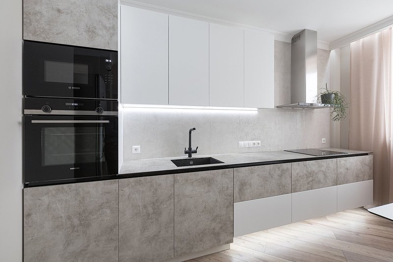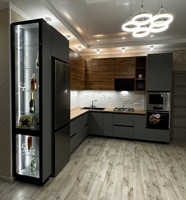 Современная угловая кухня с фасадами бетон «Модель 951»