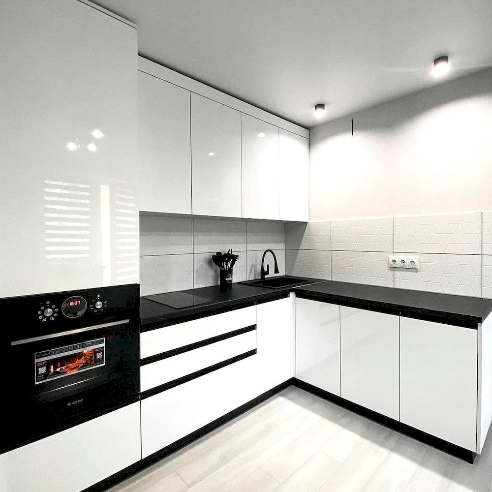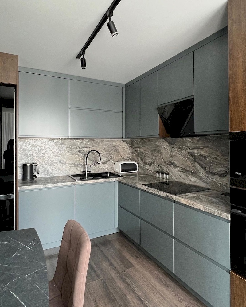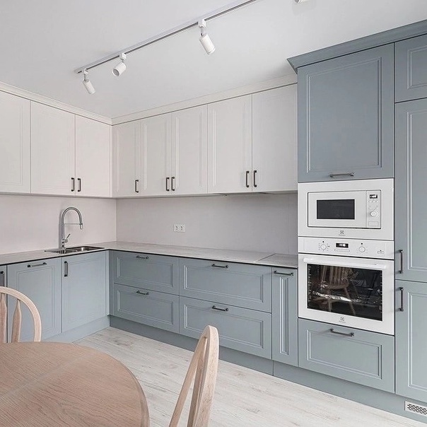 Светло-голубая кухня с фасадами МДФ в эмали «Модель 811»