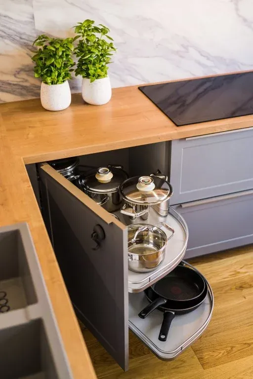 Серый распашной шкаф с открытыми полками «Модель 7»