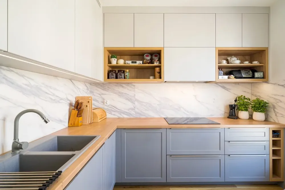 Глянцевая кухня с каменной столешницей «Модель 900»