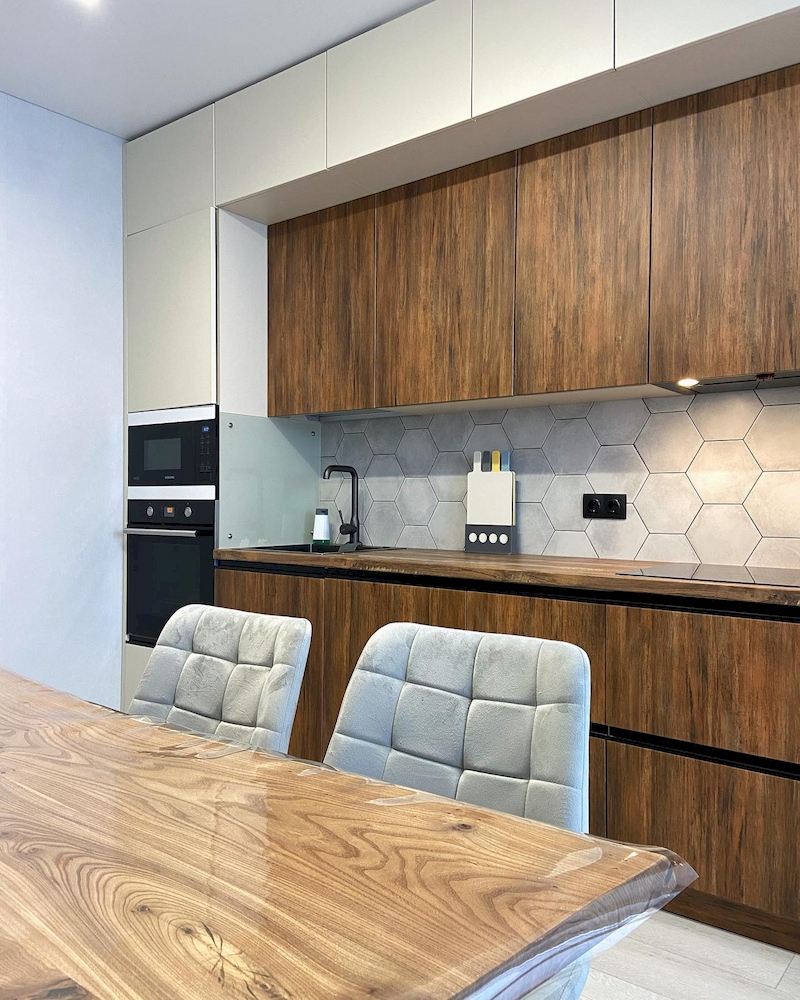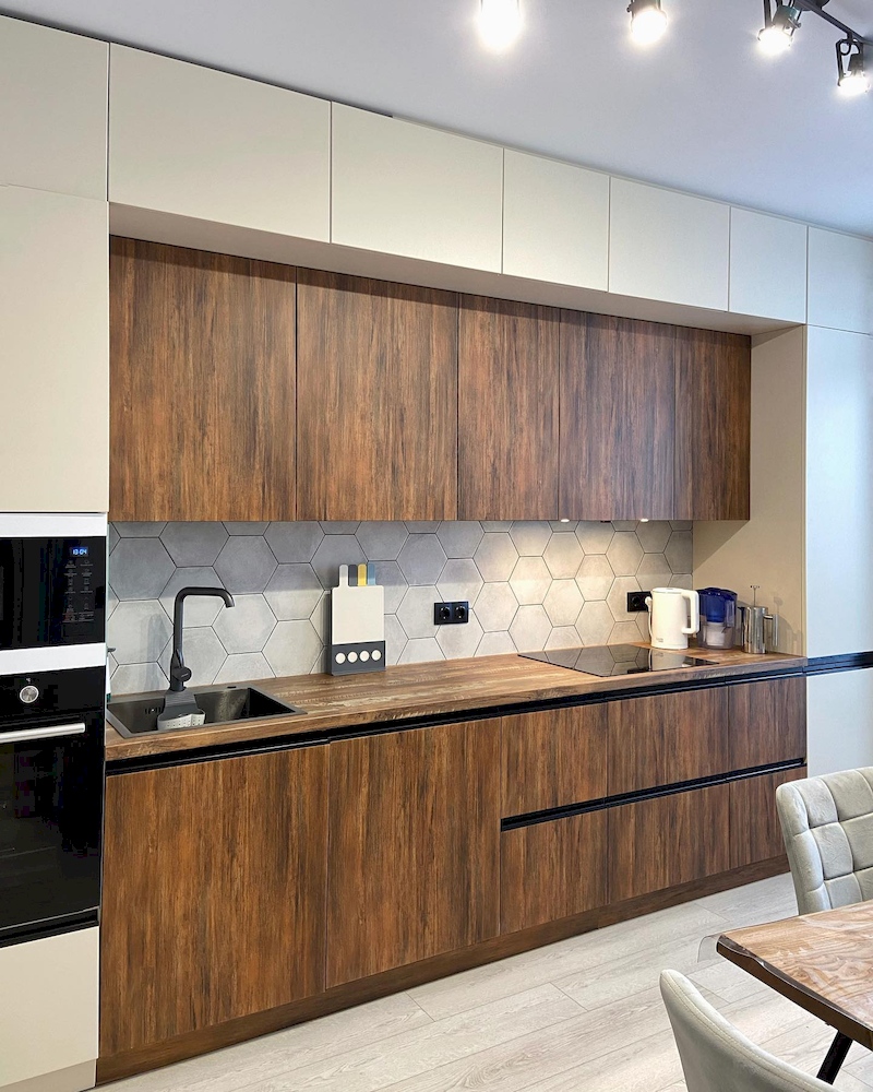 Серая кухня с белыми верхними шкафами «Модель 974»