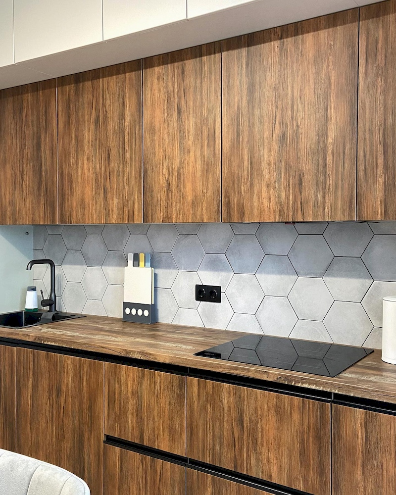 Современная угловая кухня с фасадами бетон «Модель 951»