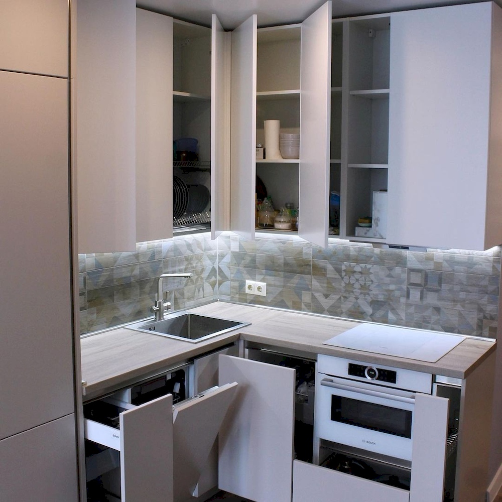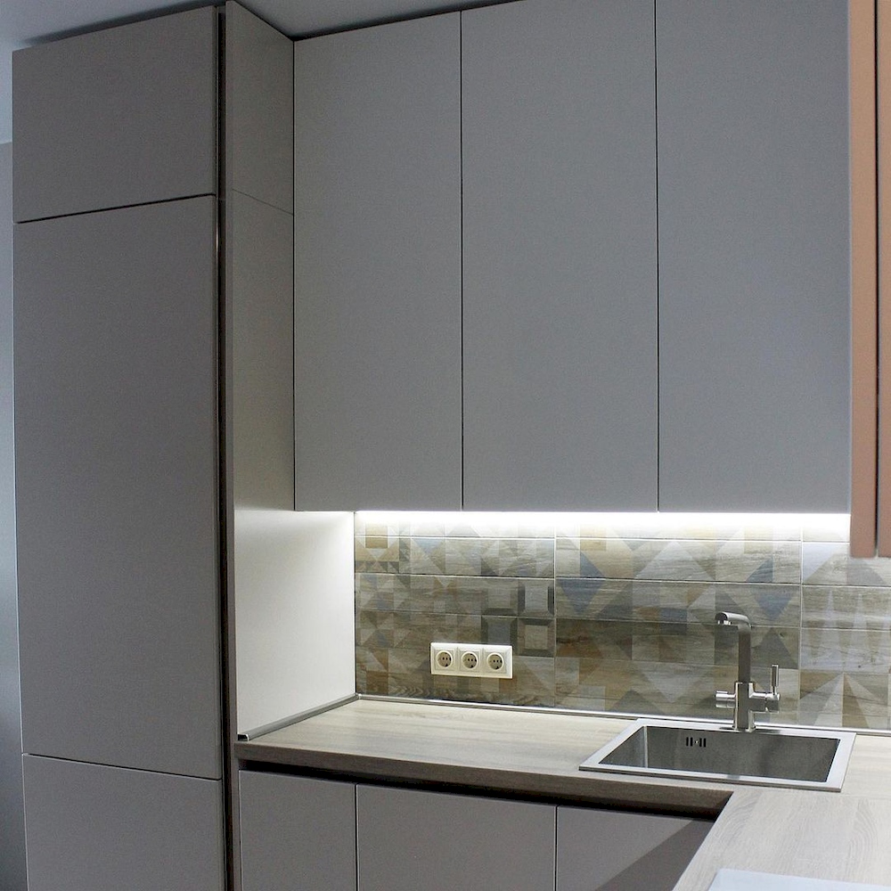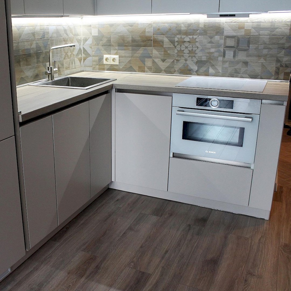 Серая кухня с белыми верхними шкафами «Модель 974»