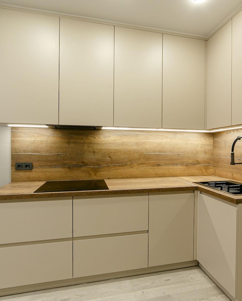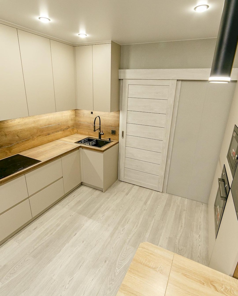 Маленькая п-образная кухня-гостиная «Модель 872»