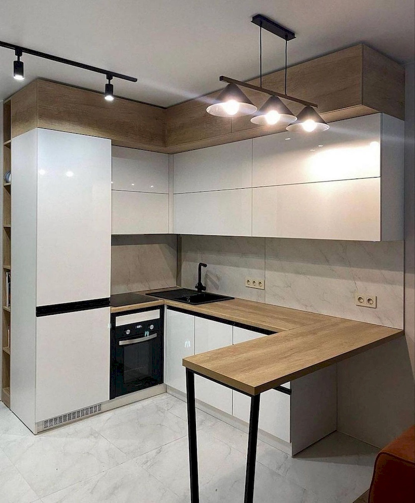 Угловая кухня со встраиваемой техникой «Модель 823»