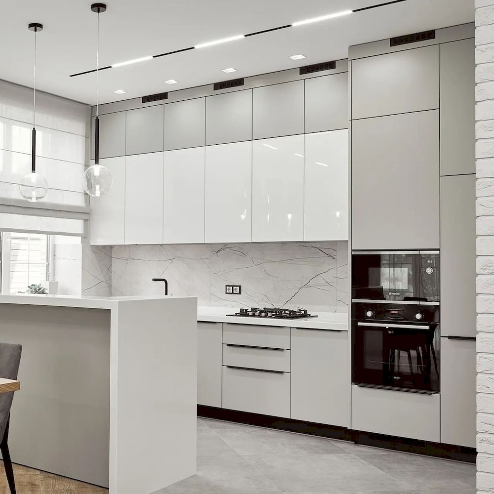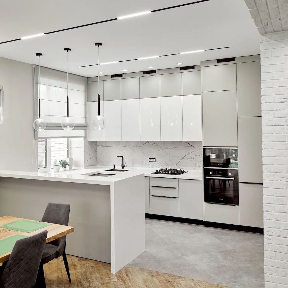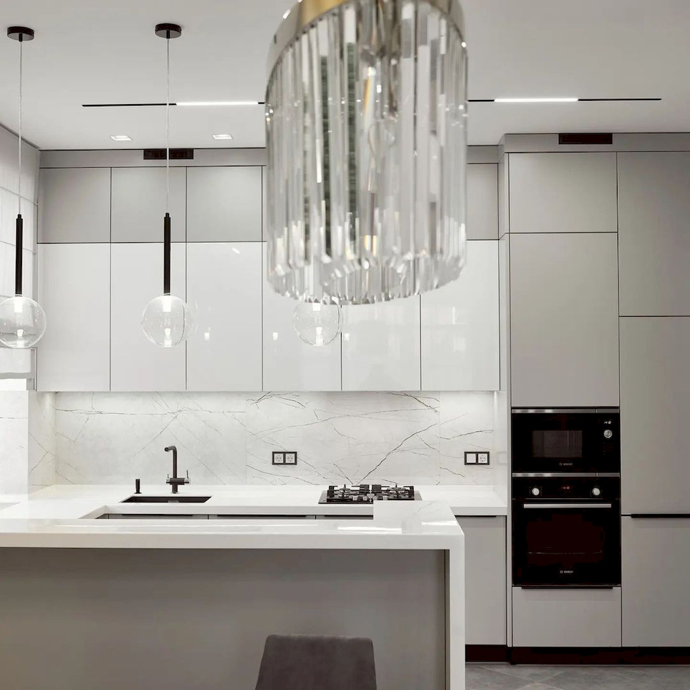 Большая белая кухня с рифлеными фасадами «Модель 633»