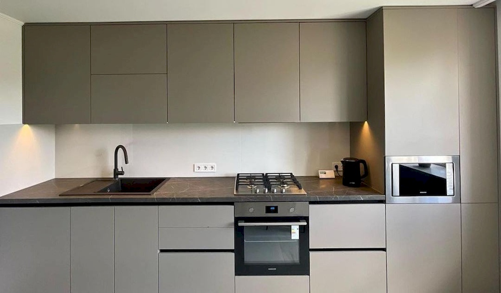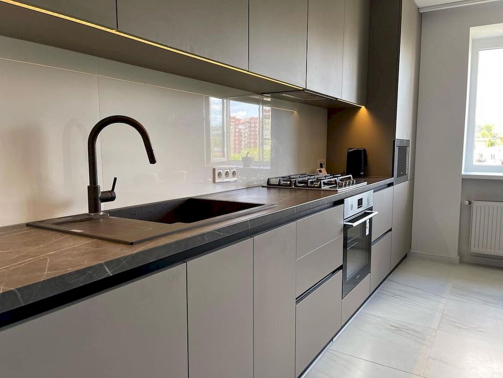 Небольшая комбинированная кухня с высокими шкафами «Модель 638»