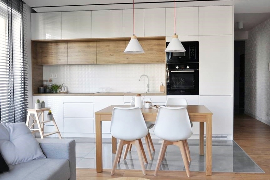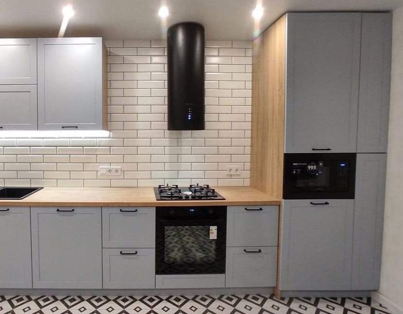 Серая кухня с белыми верхними шкафами «Модель 974»