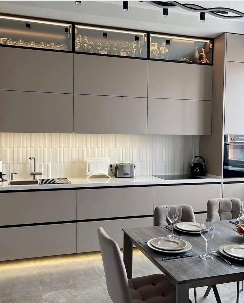 Кухня с комбинированными фасадами и островом «Модель 700»