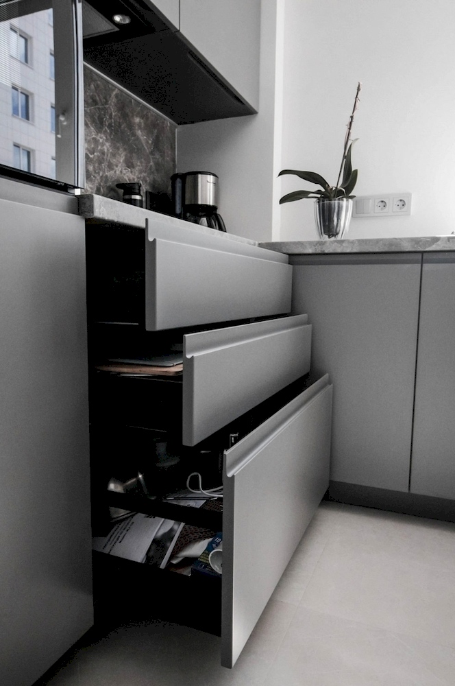 Серая минималистичная кухня «Модель 641»