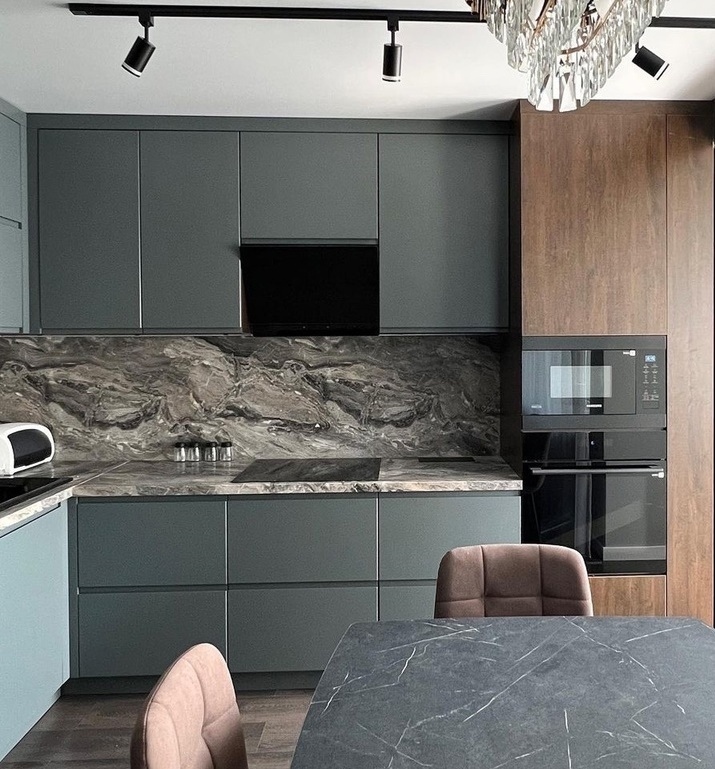 Серая минималистичная кухня «Модель 641»
