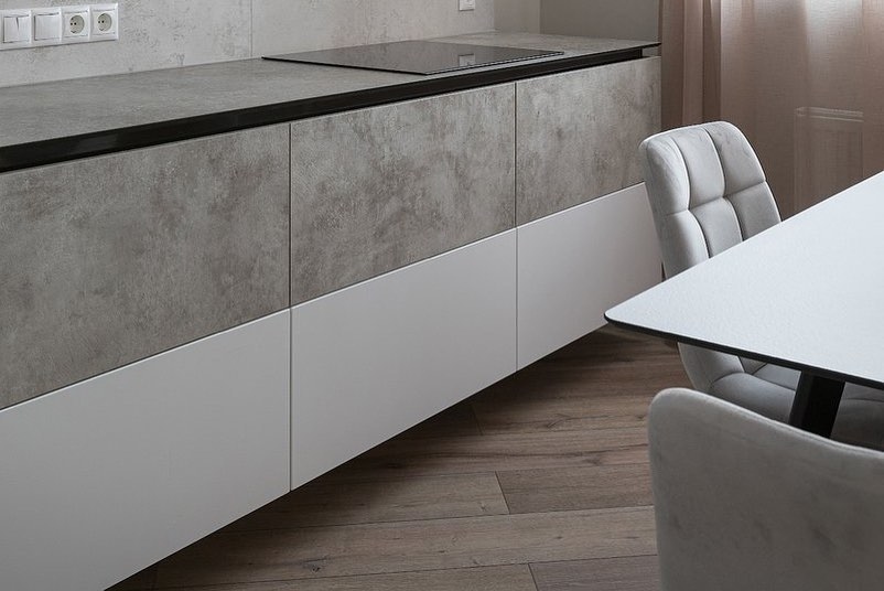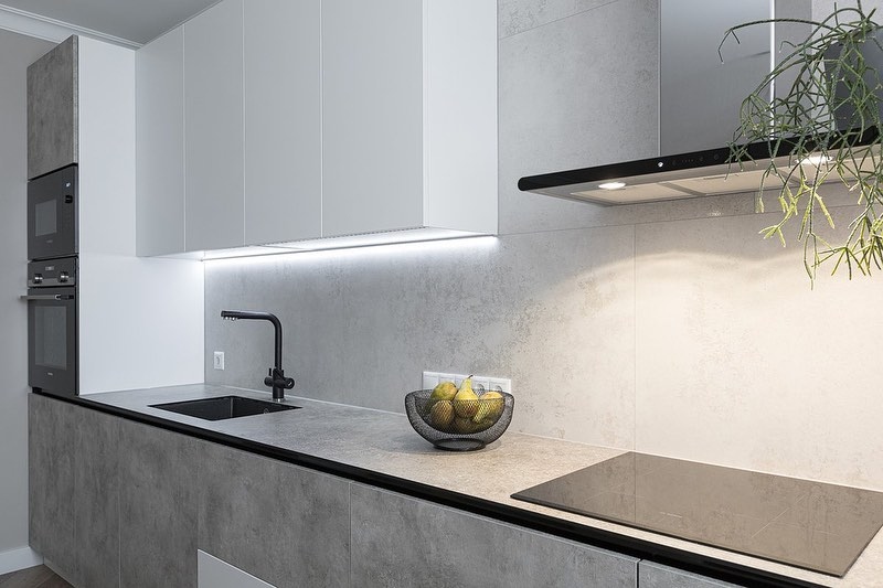 Современная угловая кухня с фасадами бетон «Модель 951»