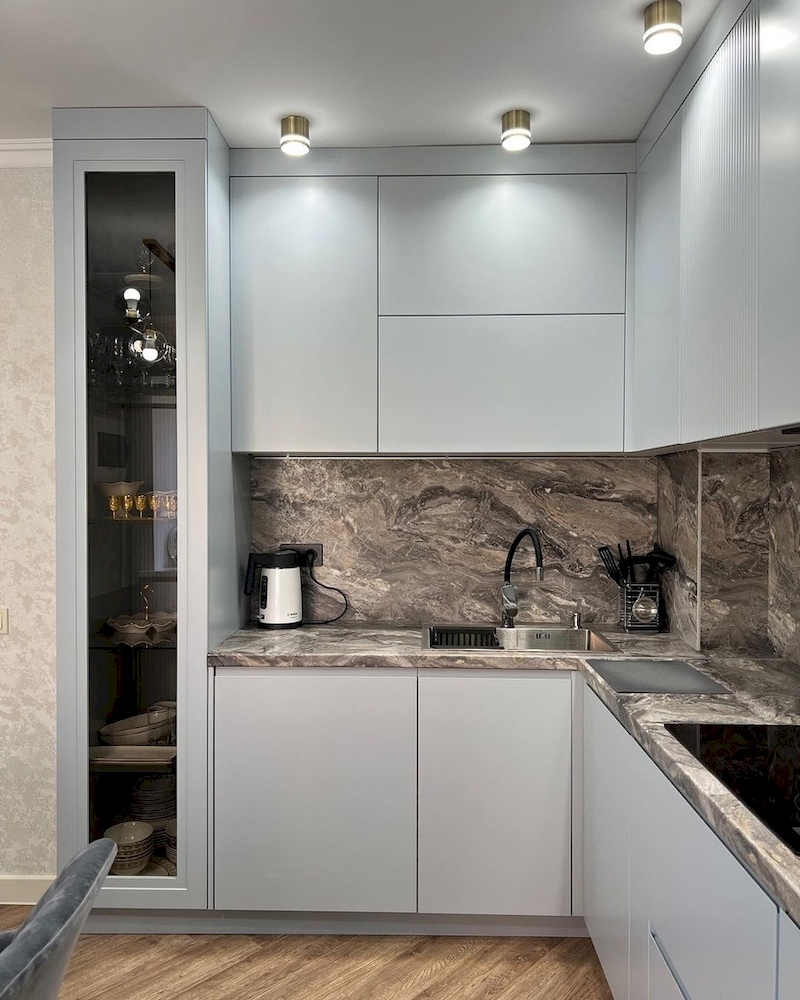 Светло-голубая кухня с фасадами МДФ в эмали «Модель 811»