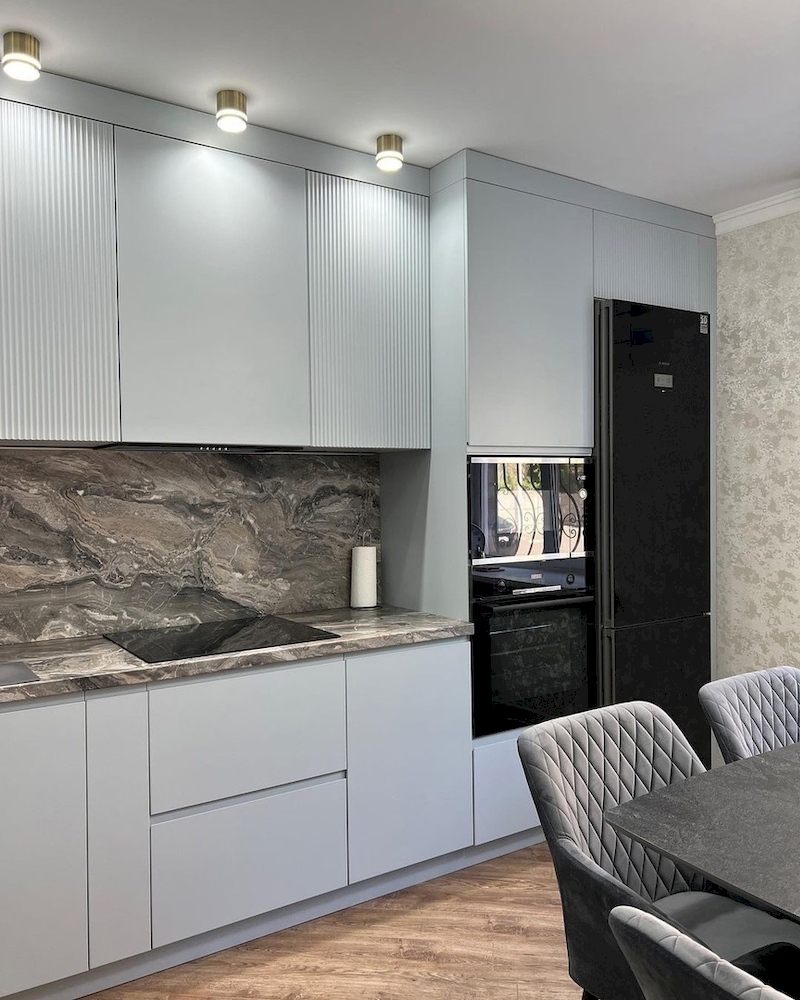 Прямая матовая кухня с рифленными фасадами «Модель 954»
