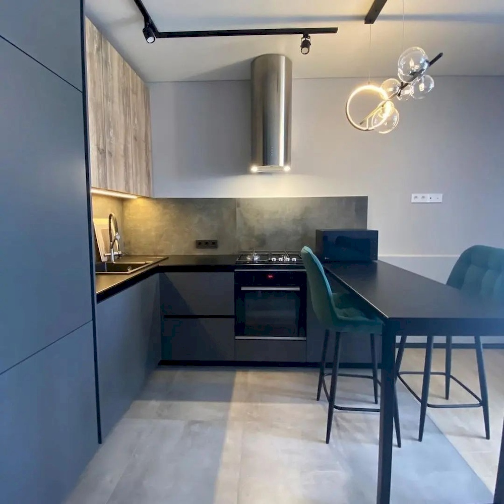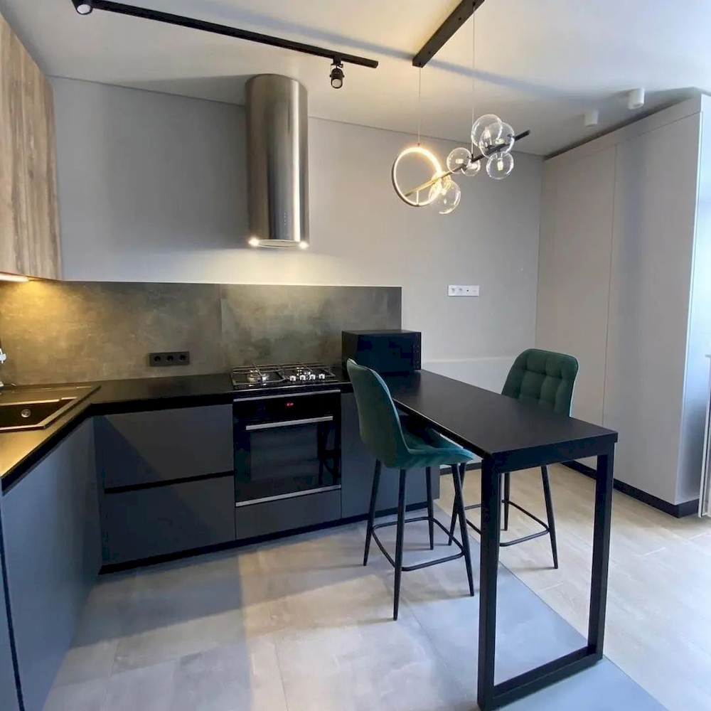 Тёмная матовая кухня с барной стойкой «Модель 960»