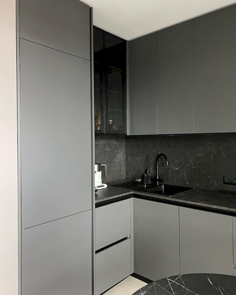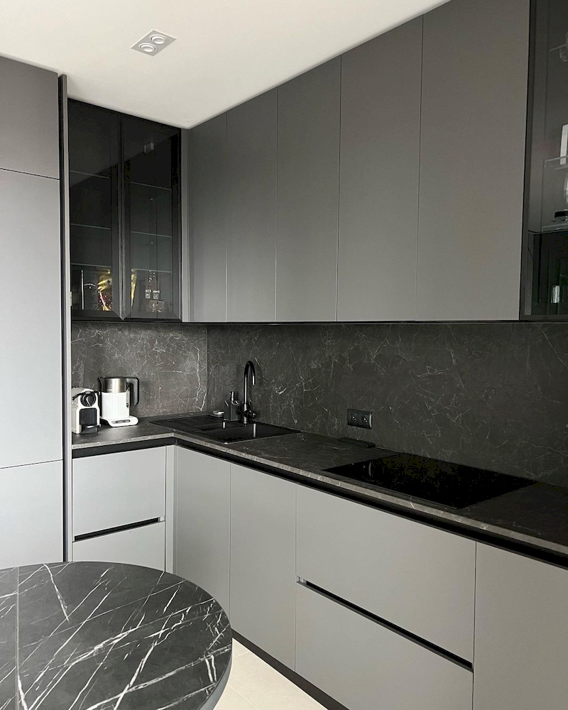 Глянцевая кухня с золотой вставкой «Модель 956»