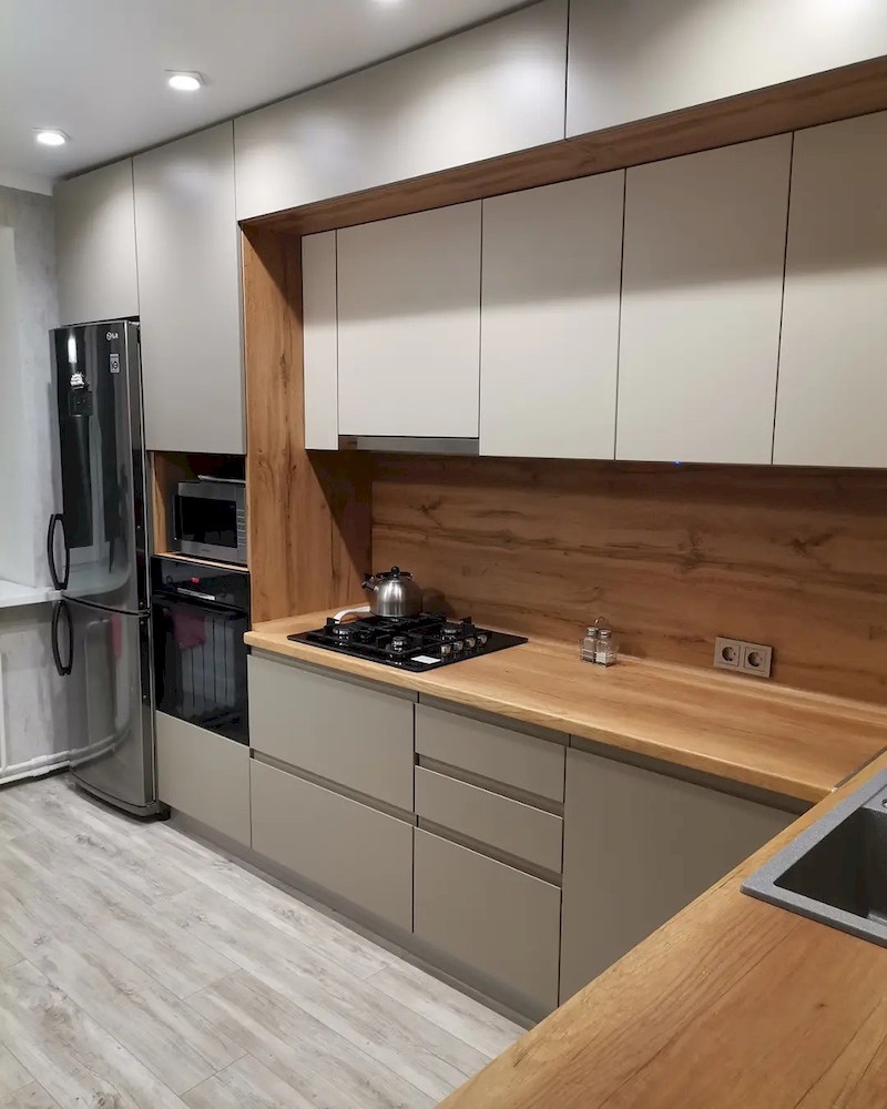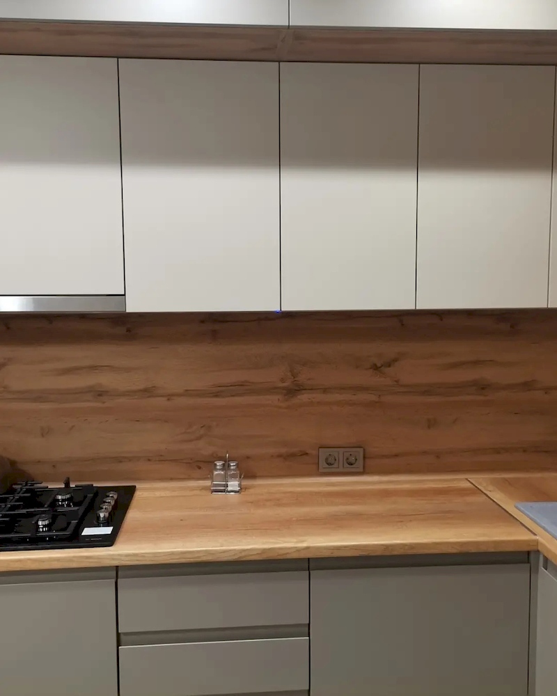 Угловая кухня со стеновой панелью под дерево «Модель 886»