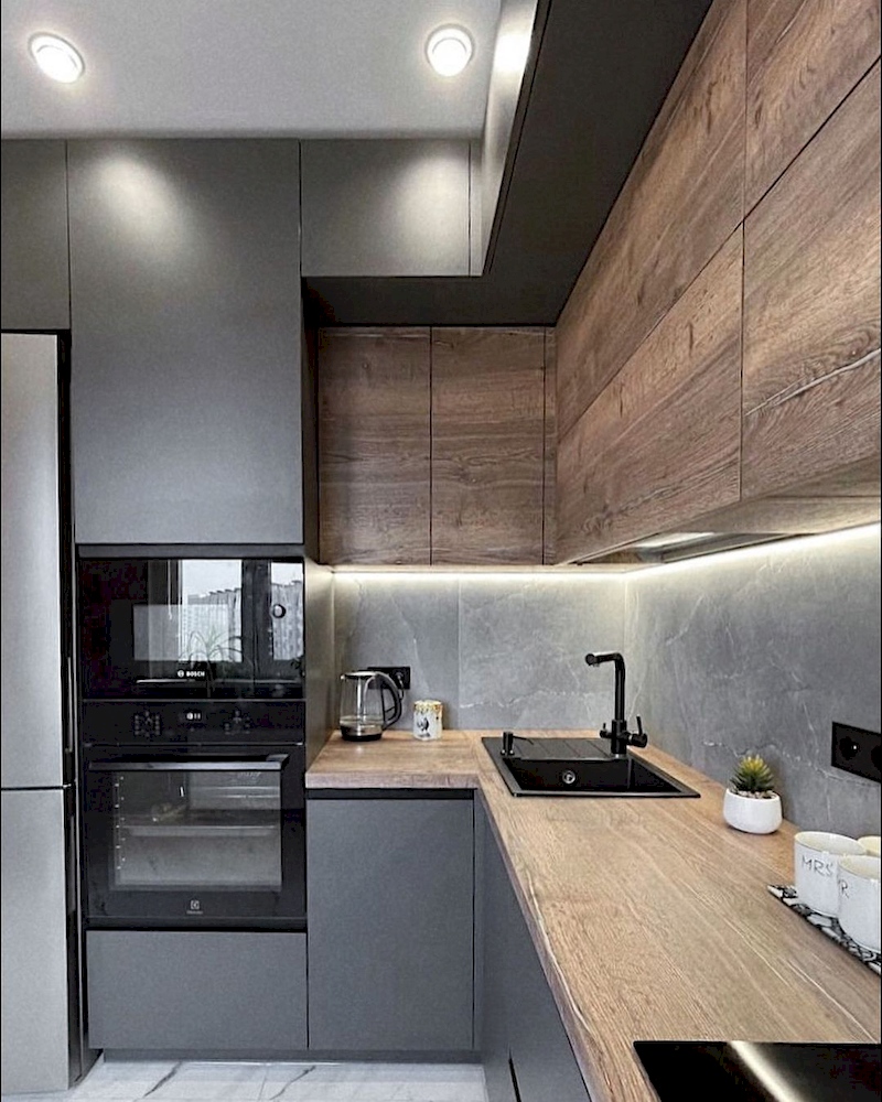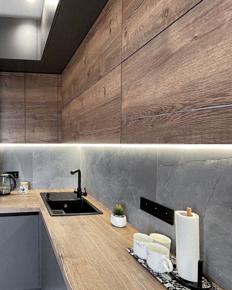 Угловая кухня со столешницей под дерево «Модель 897»