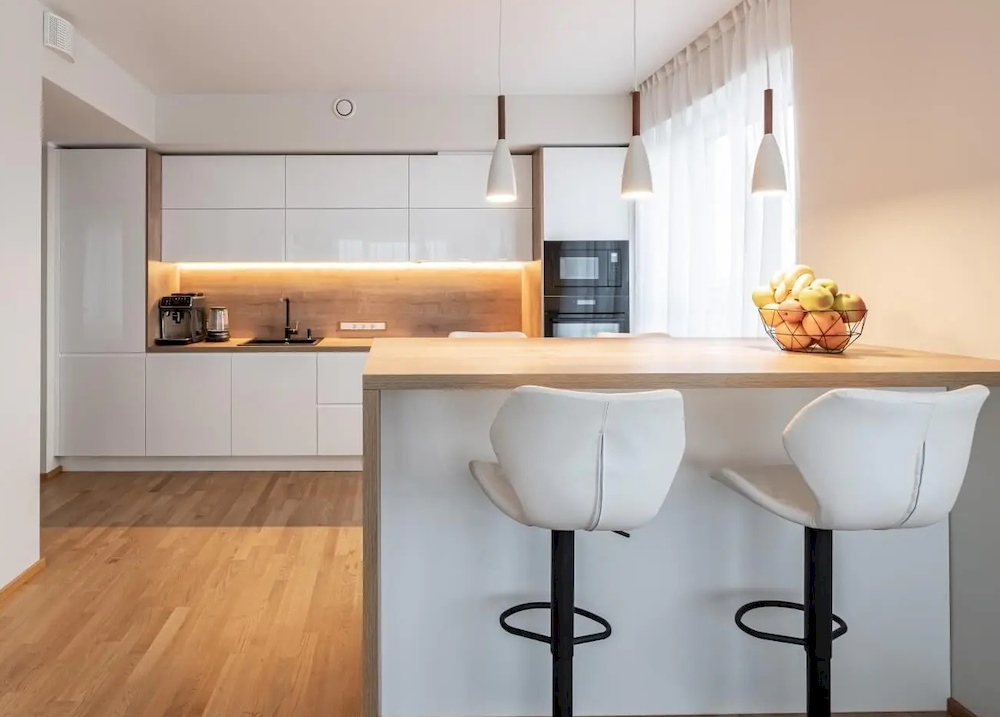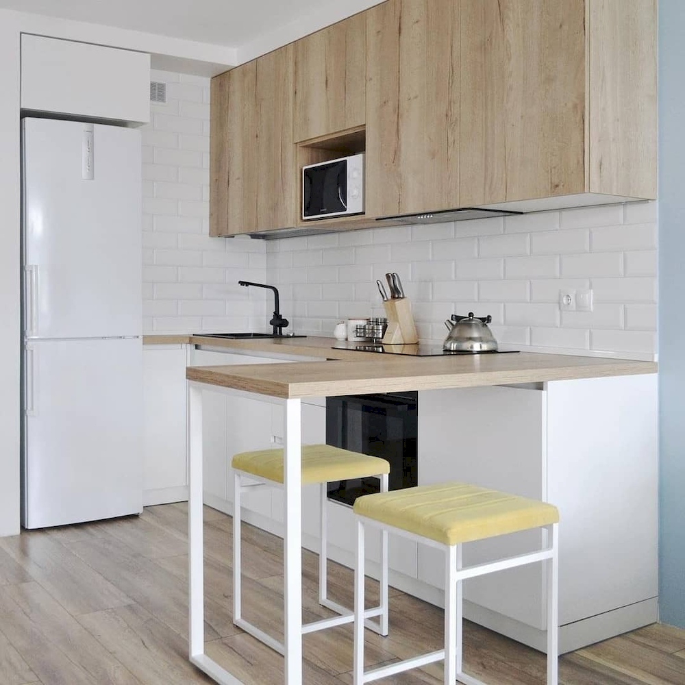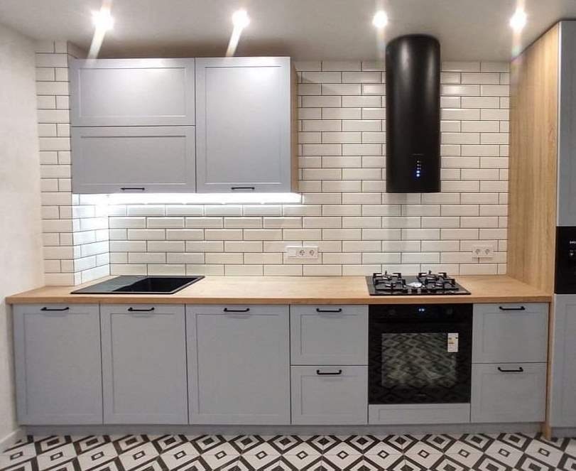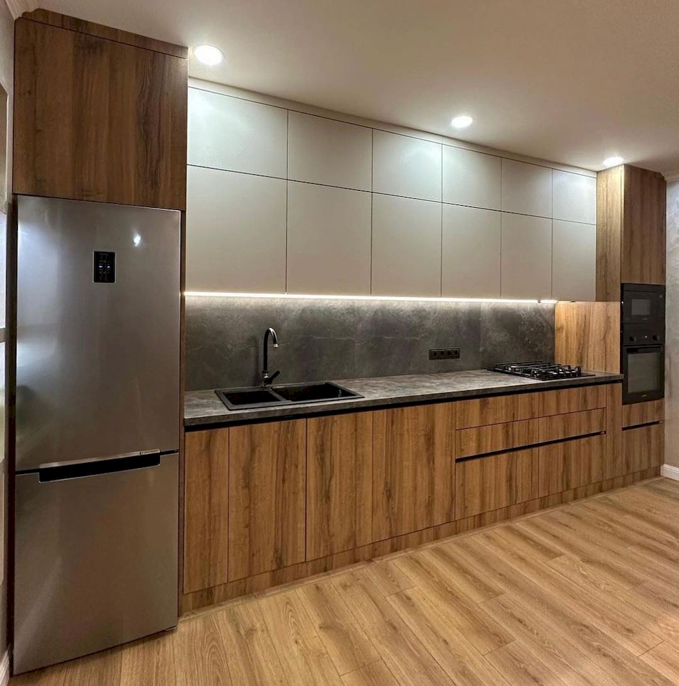 Большая прямая кухня со встроенным холодильником «Модель 814»