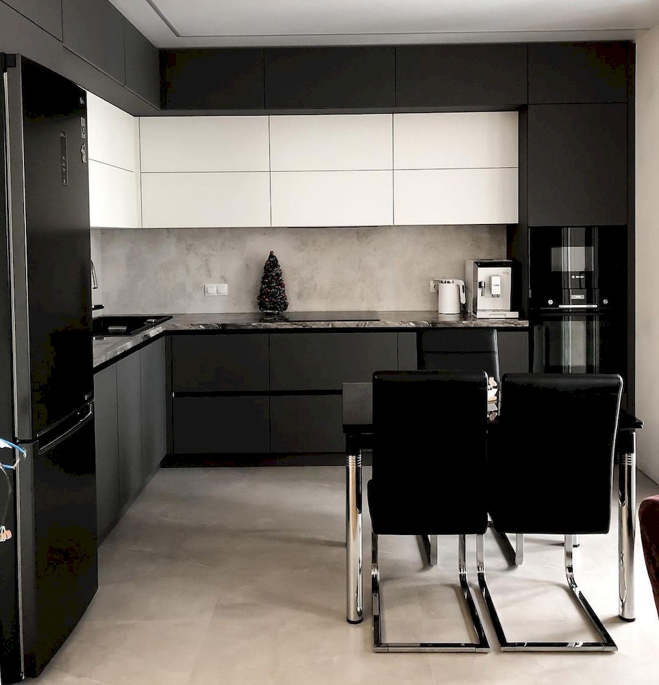 Глянцевая кухня со встроенным холодильником «Модель 990»