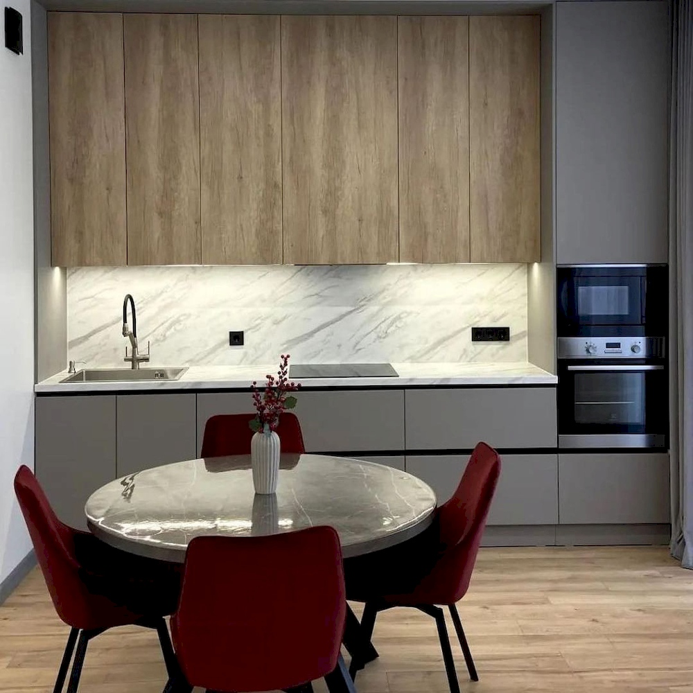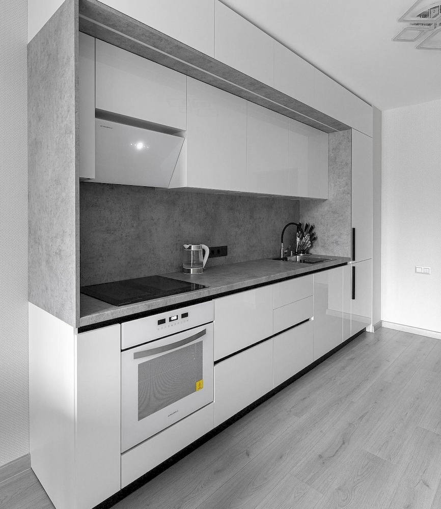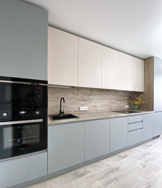 Прямая кухня с высокими верхними шкафами «Модель 955»