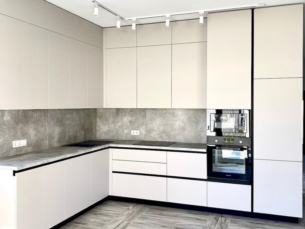 Серая кухня с белыми верхними шкафами «Модель 974»