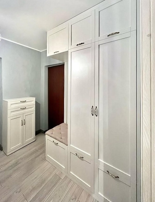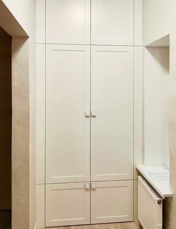 Встроенный белый шкаф с антресолью и обувницей «Модель 750»