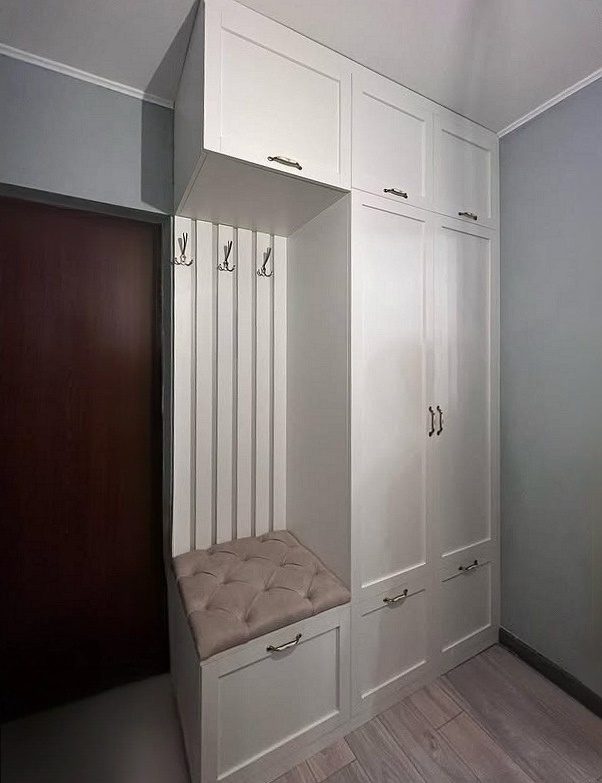 Белая прихожая в стиле неоклассика с антресолью «Модель 475»