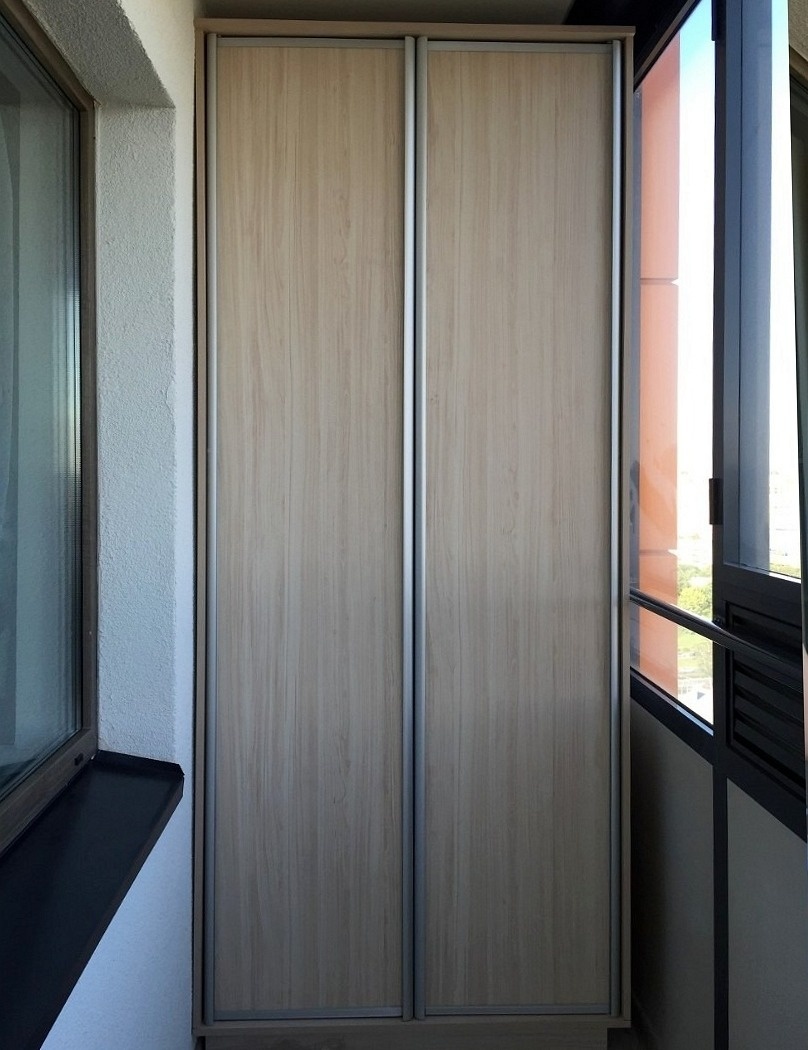 Двухдверный узкий шкаф цвета ясень на балкон «Модель 987»