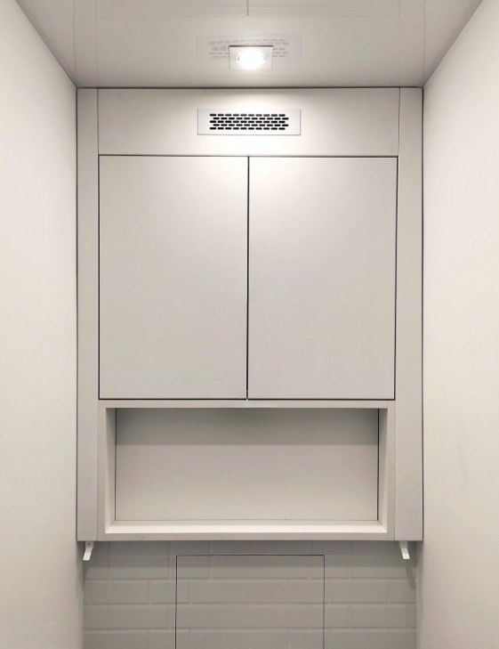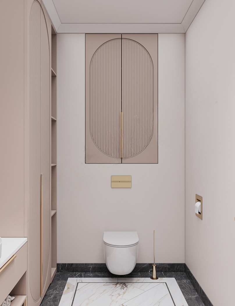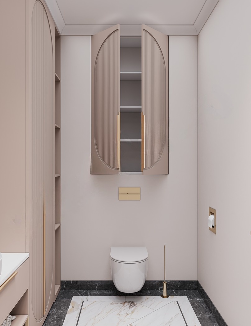 Встроенный бежевый шкафчик над инсталляцией «Модель 1030»