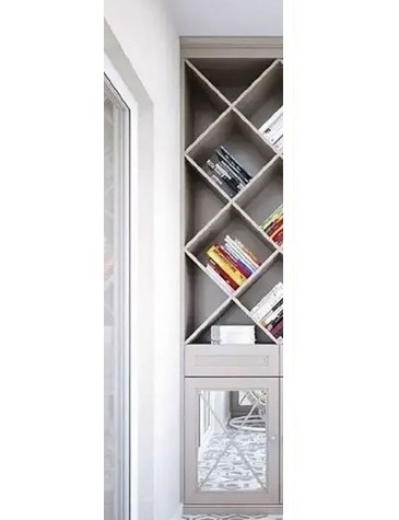 Шкаф с диагональными полками и зеркалом на балкон «Модель 948»