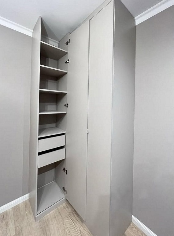Узкий угловой шкаф из ЛДСП серого цвета «Модель 841»