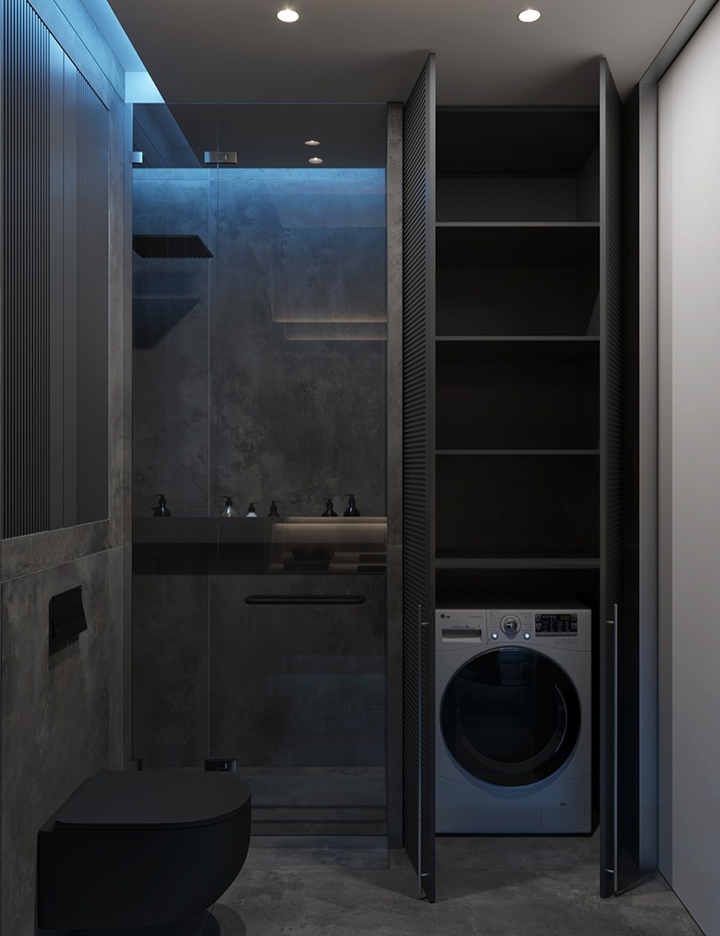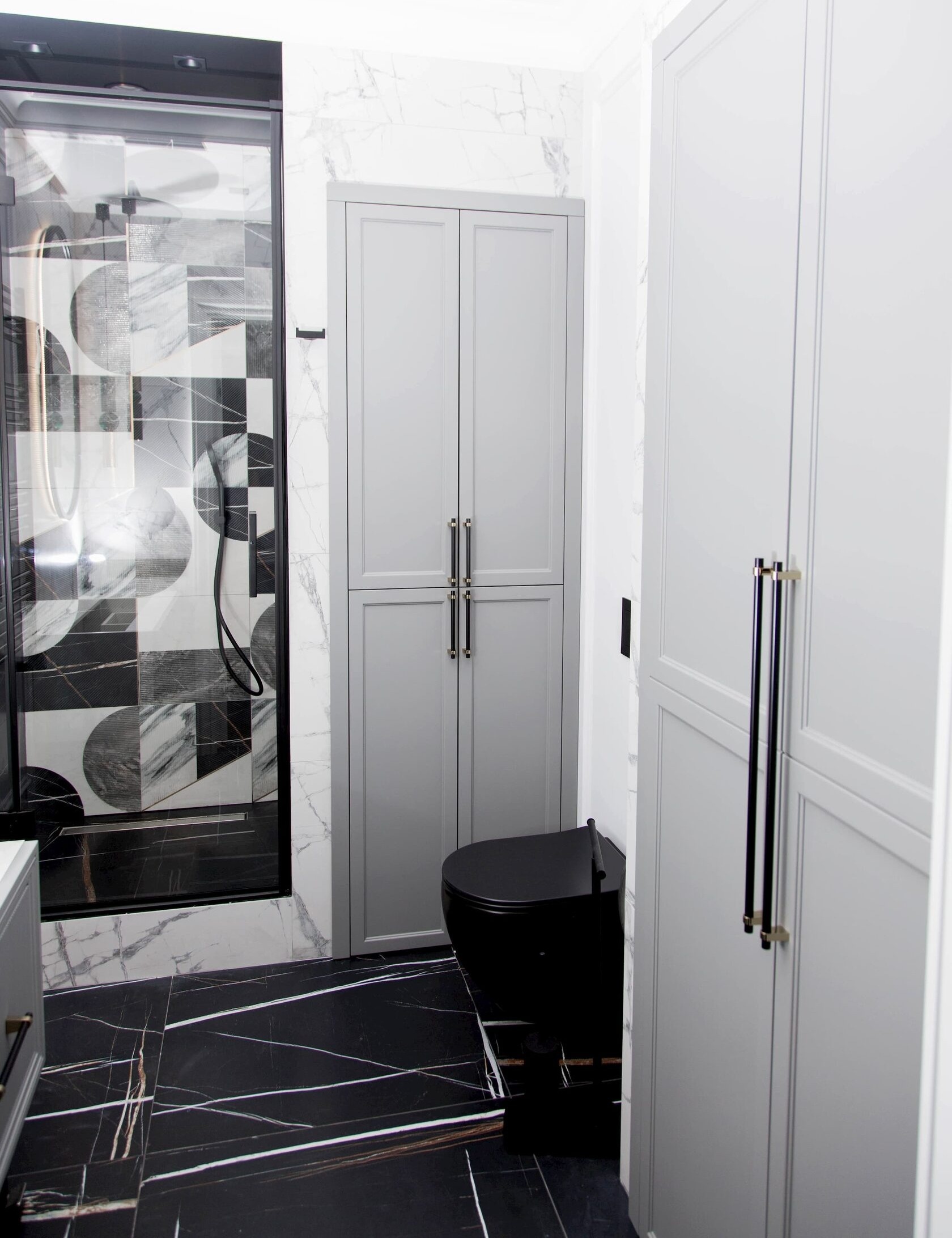 Небольшой встроенный шкаф черного цвета в ванную «Модель 935»