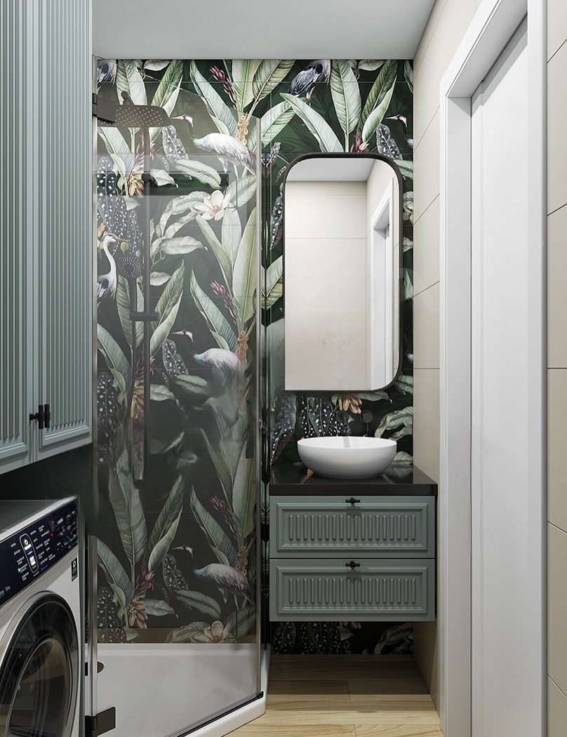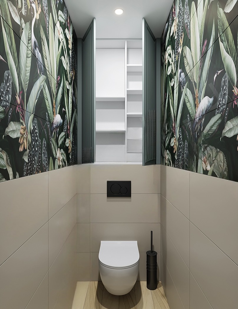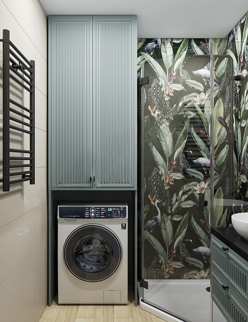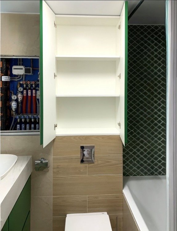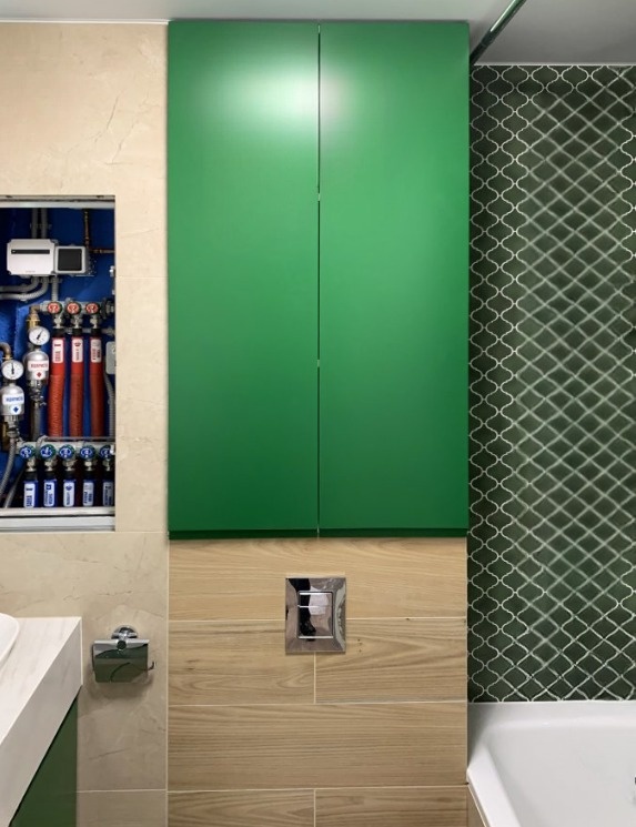 Зеленый встроенный шкаф над инсталляцией «Модель 947»