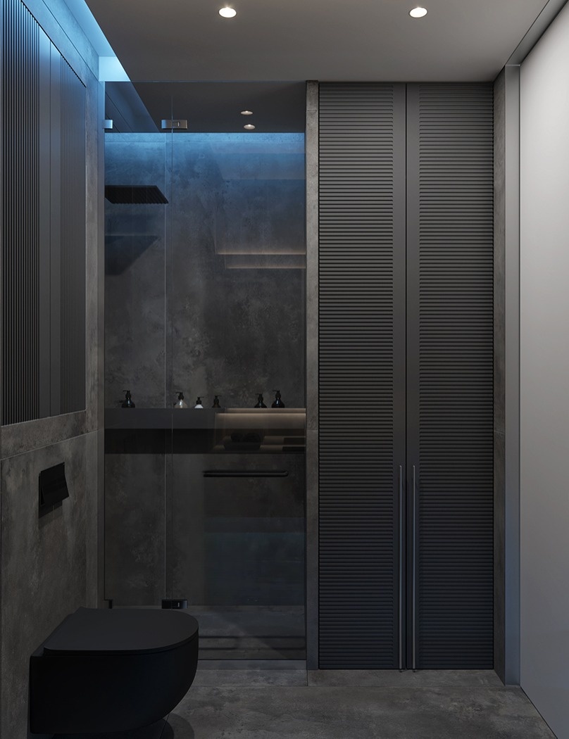 Встроенный в санузел маленький серый шкаф из МДФ «Модель 1197»