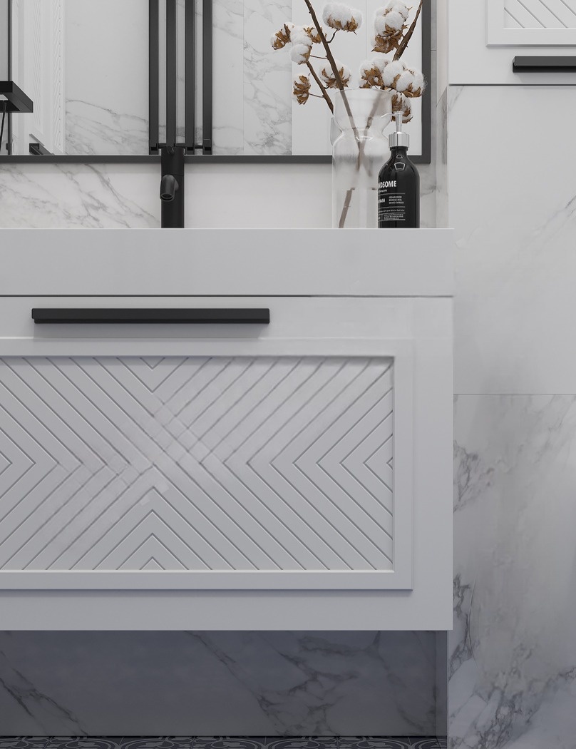 Встраиваемые шкафы и тумба с фрезеровкой в ванную «Модель 968»