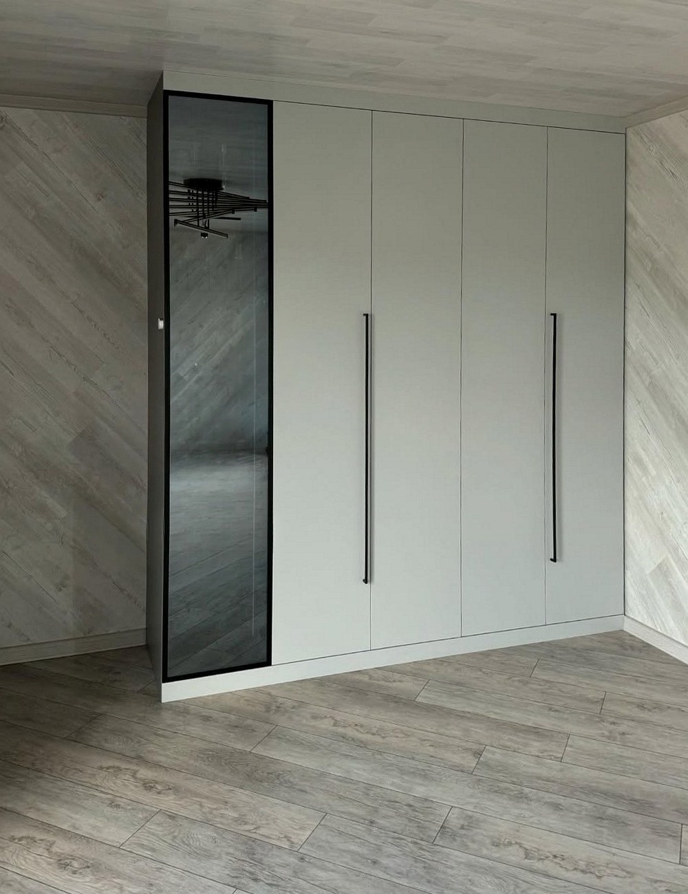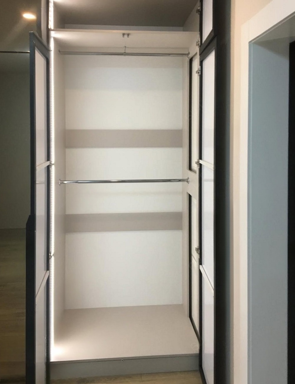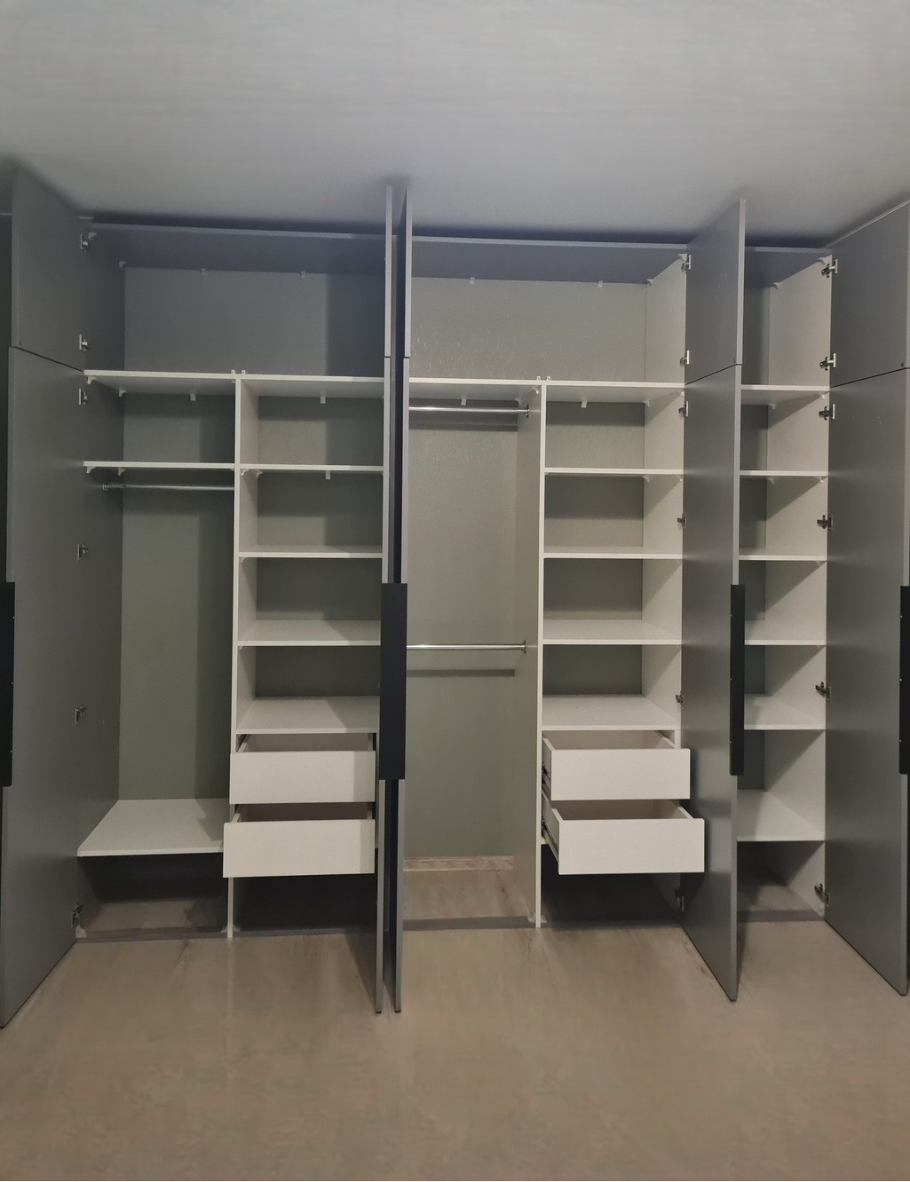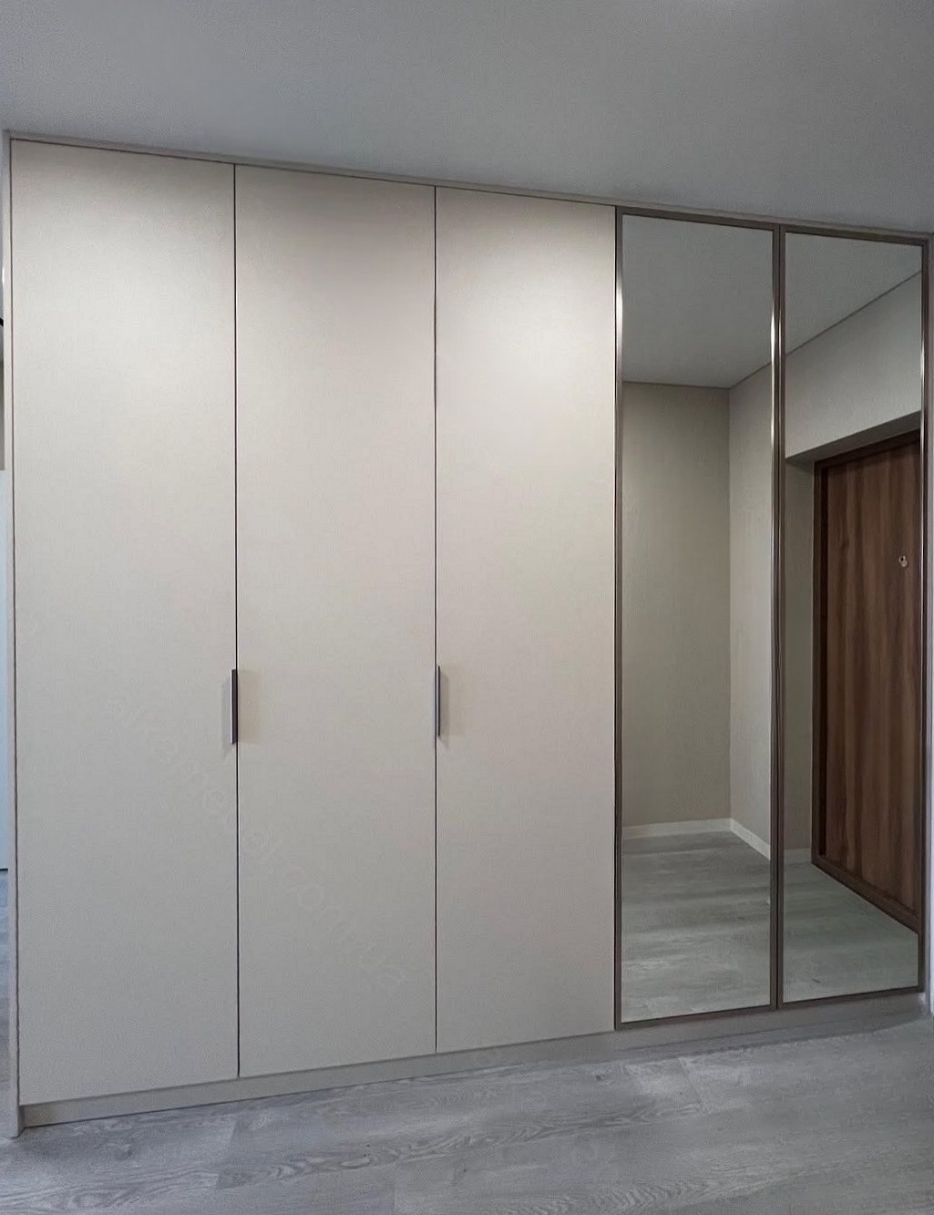 Встроенный в прихожую распашной шкаф на заказ серого цвета «Модель 686»