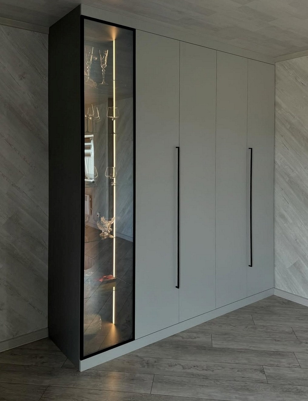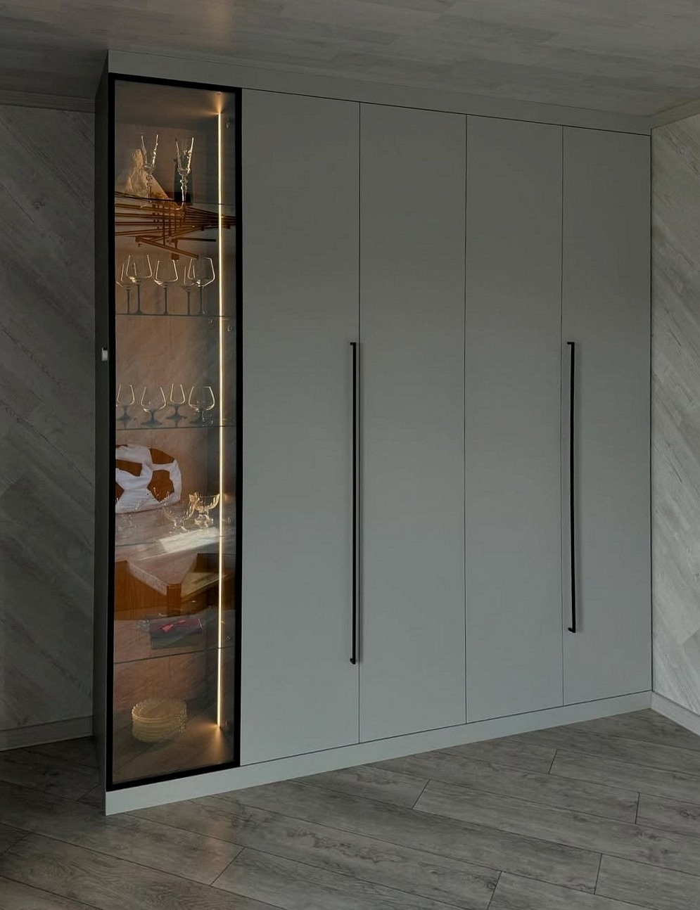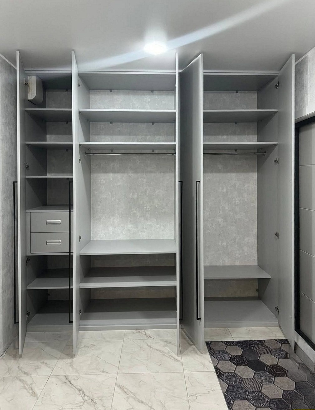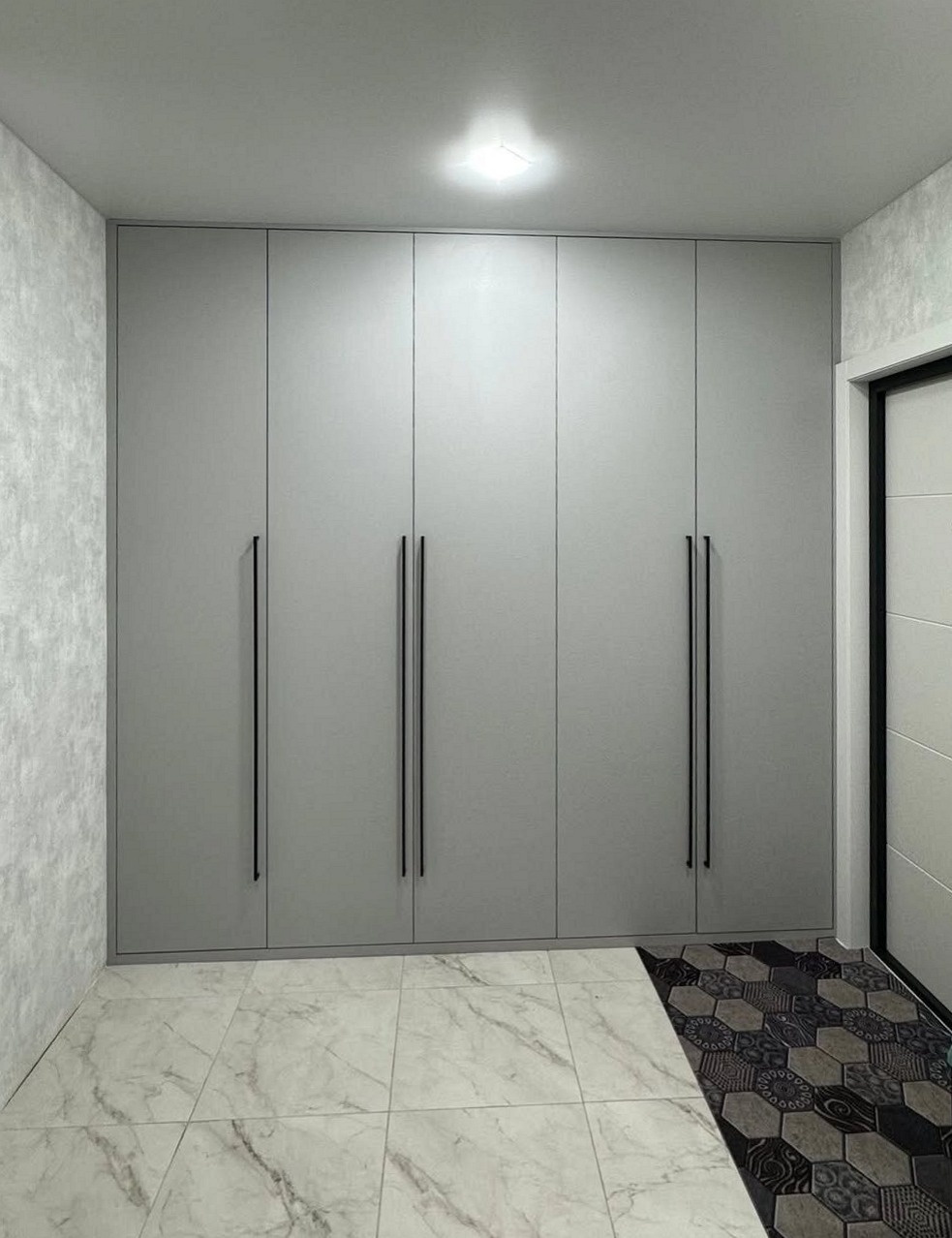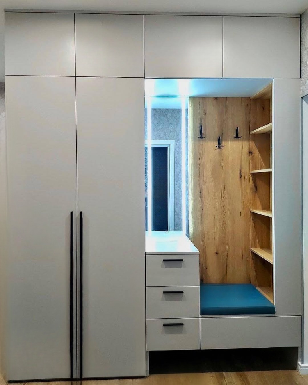 Встроенный в прихожую распашной шкаф на заказ серого цвета «Модель 686»