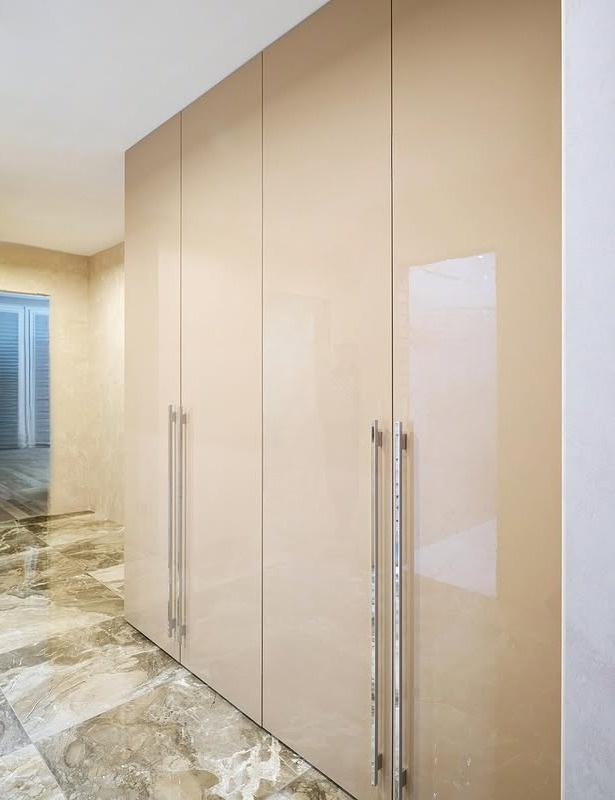 Шкаф распашной бежевый глянец в прихожую «Модель 183»