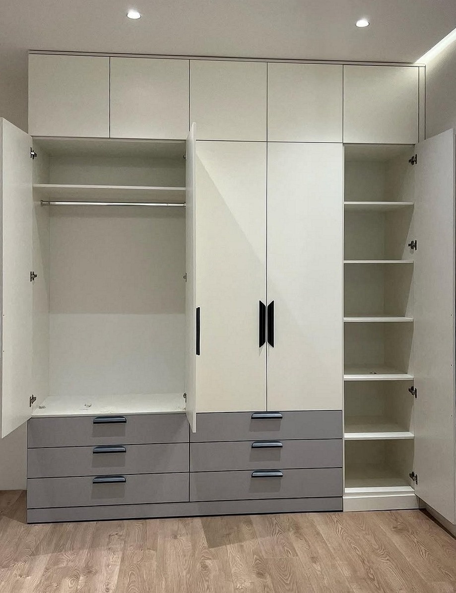 Современный шкаф под потолок с выдвижными ящиками «Модель 34»