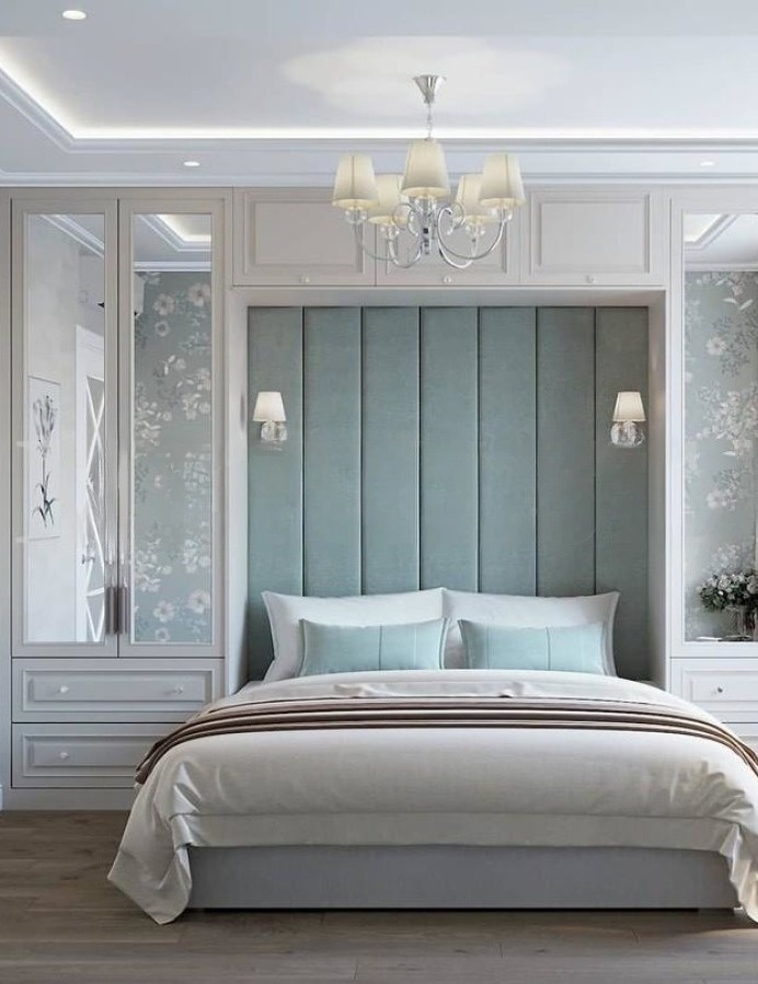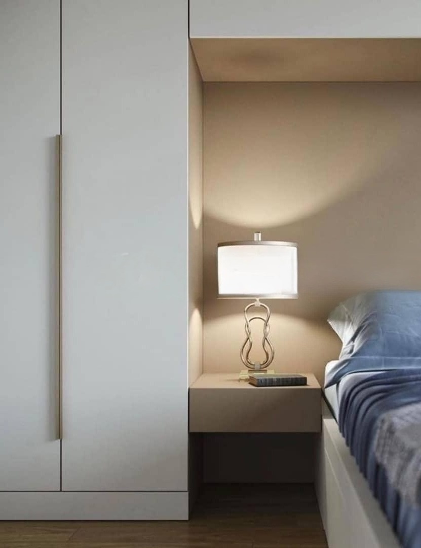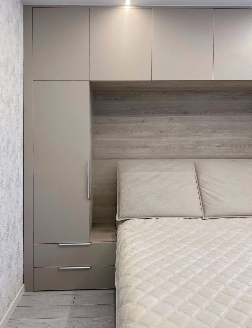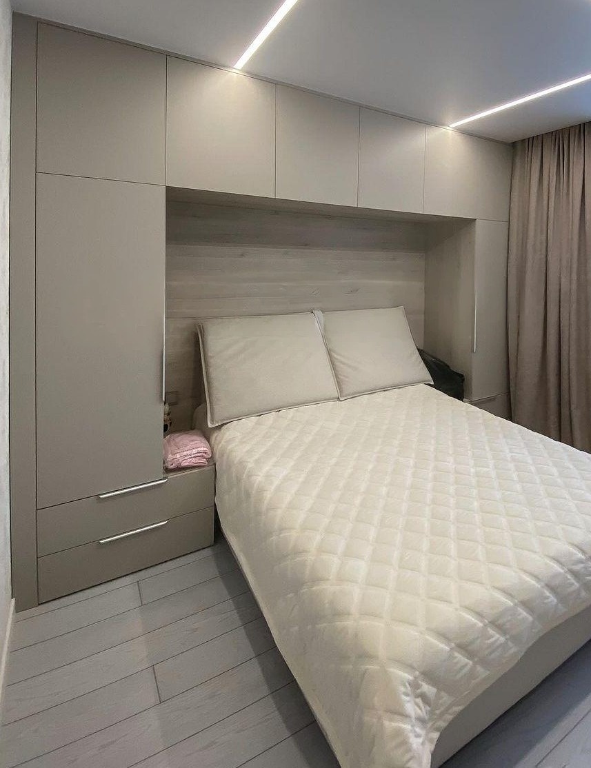 Минималистичный встроенный серый шкаф вокруг кровати «Модель 1334»