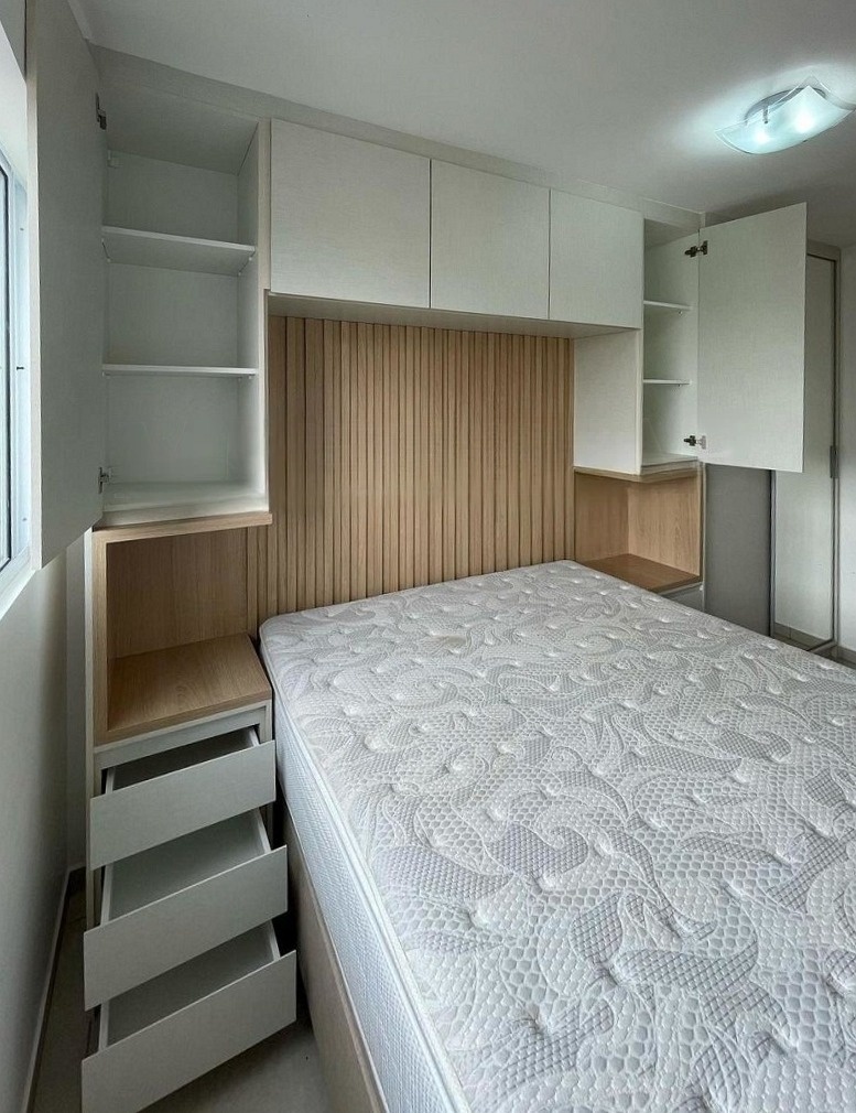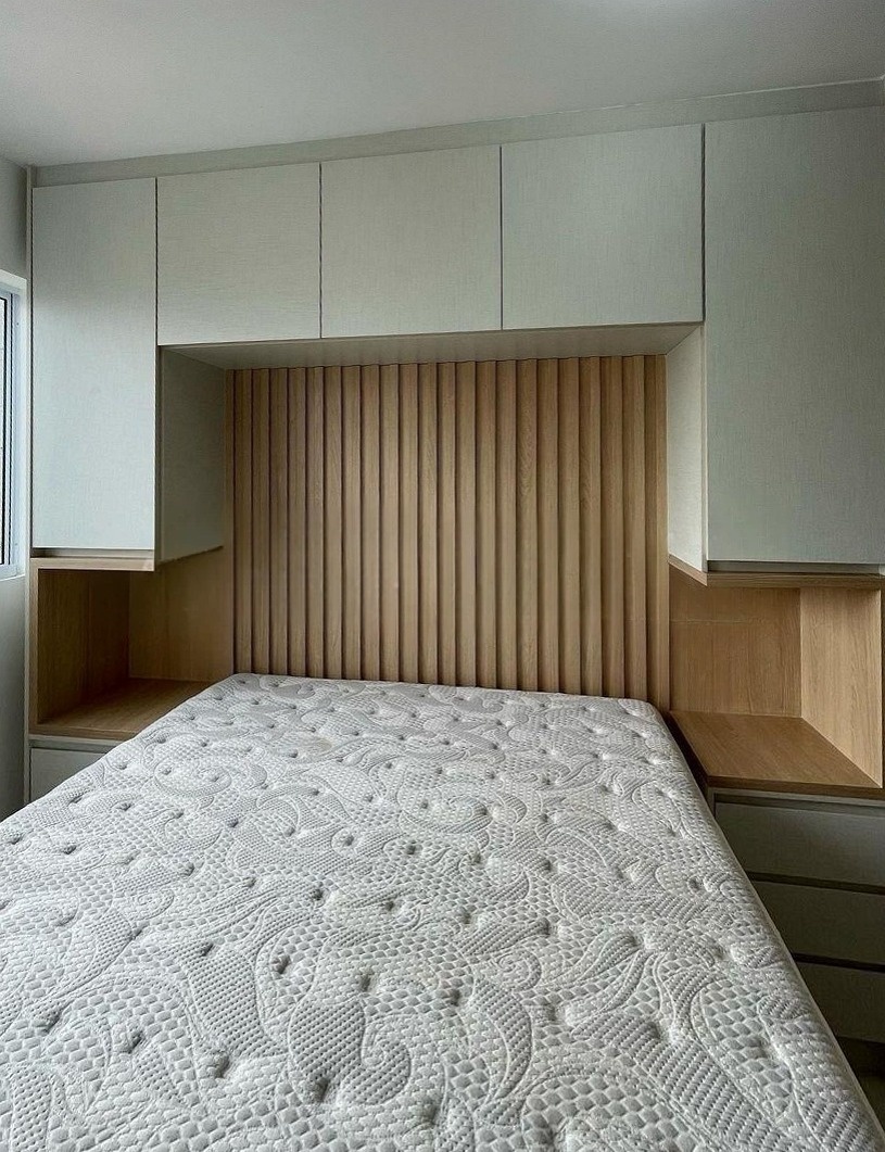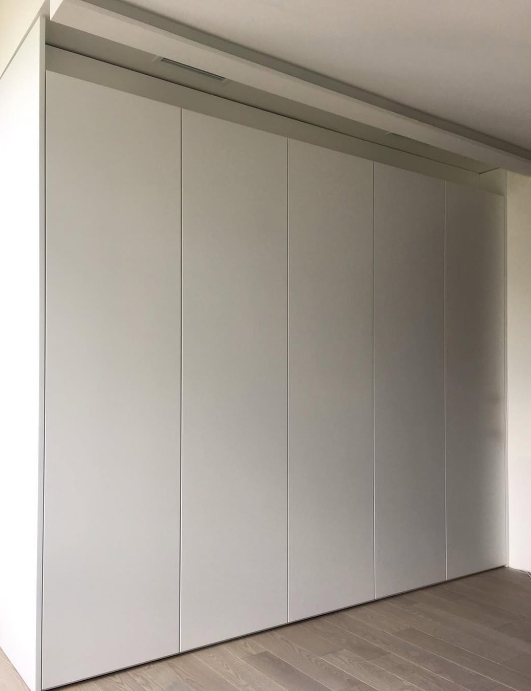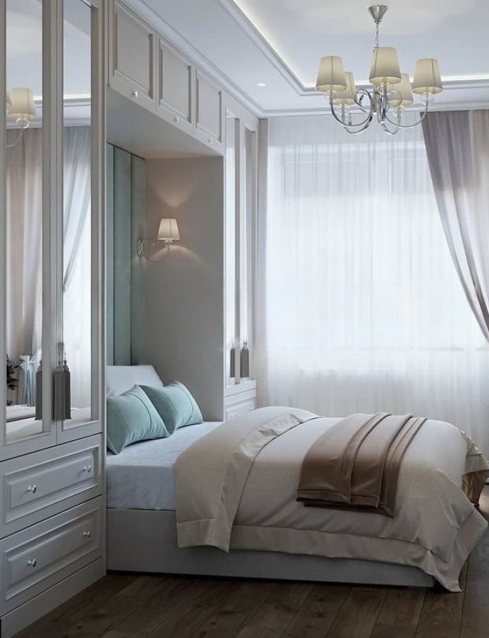 Минималистичный встроенный серый шкаф вокруг кровати «Модель 1334»