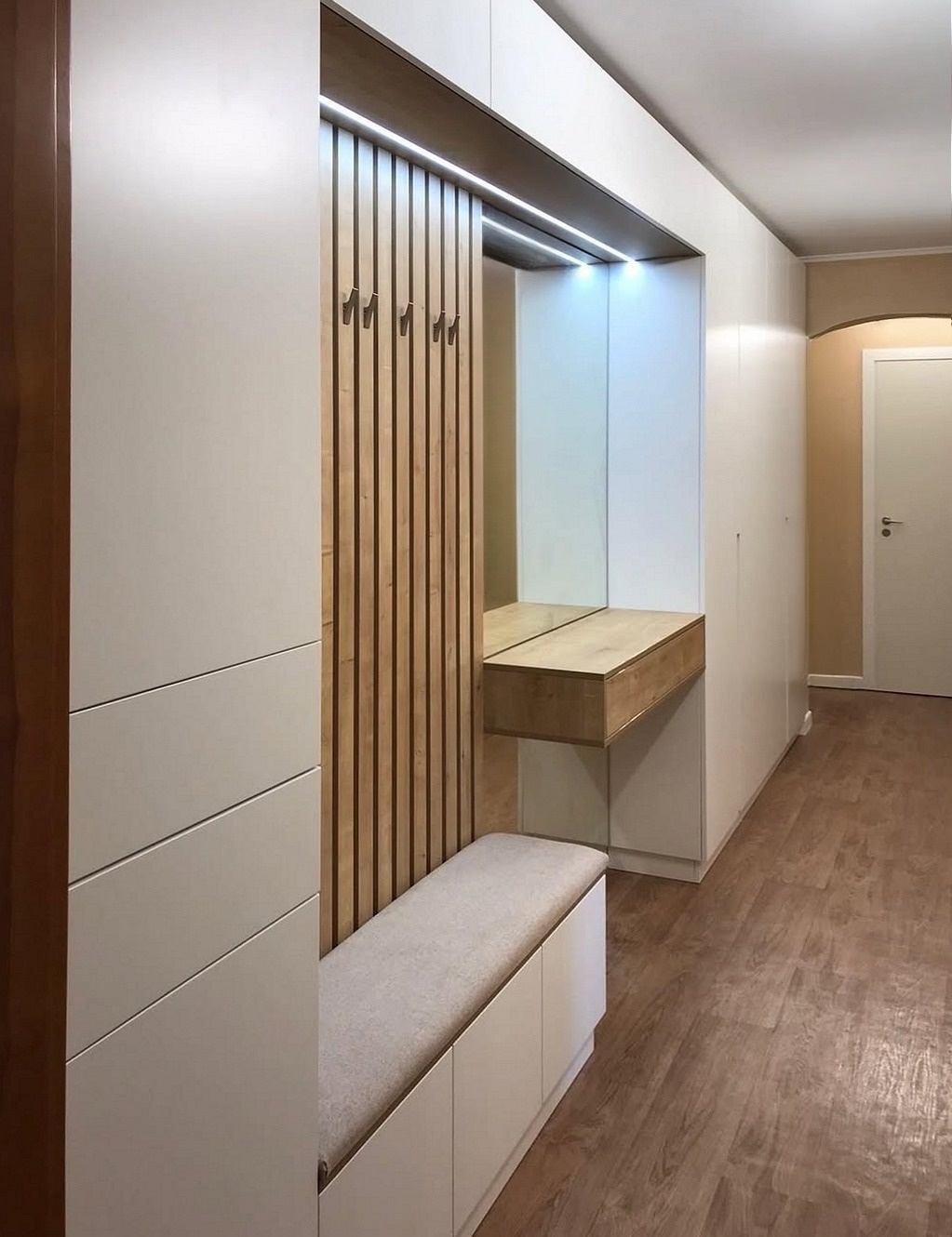 Длинный белый шкаф из ЛДСП в прихожую «Модель 565»