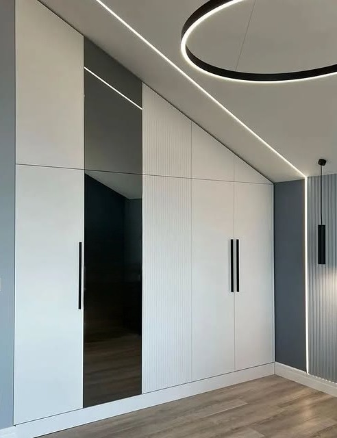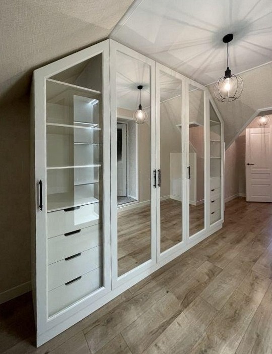 Встраиваемый распашной зеркальный шкаф на мансарду «Модель 850»