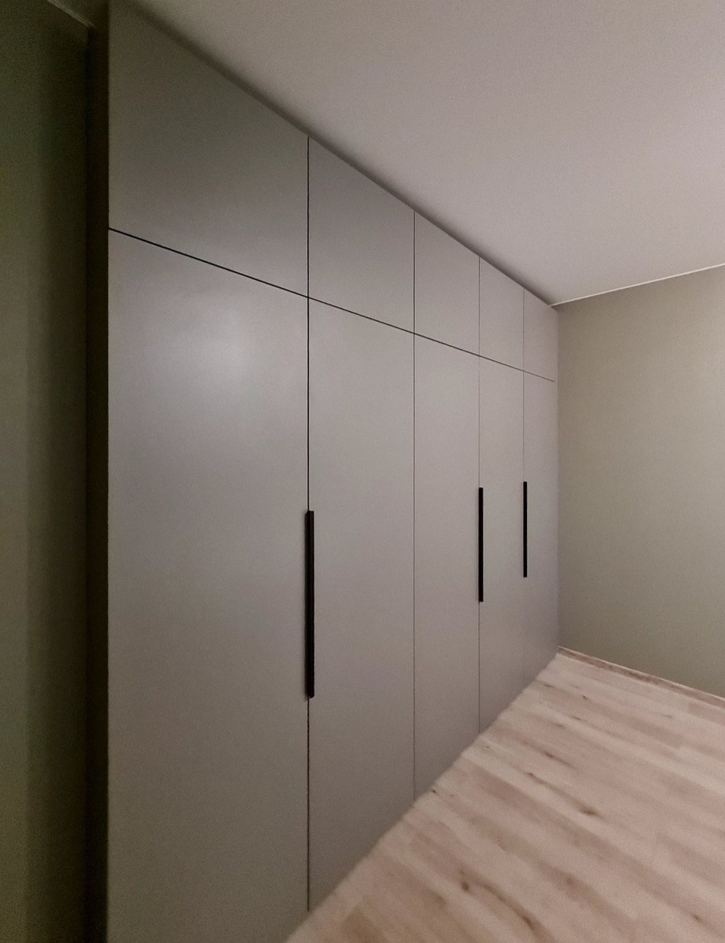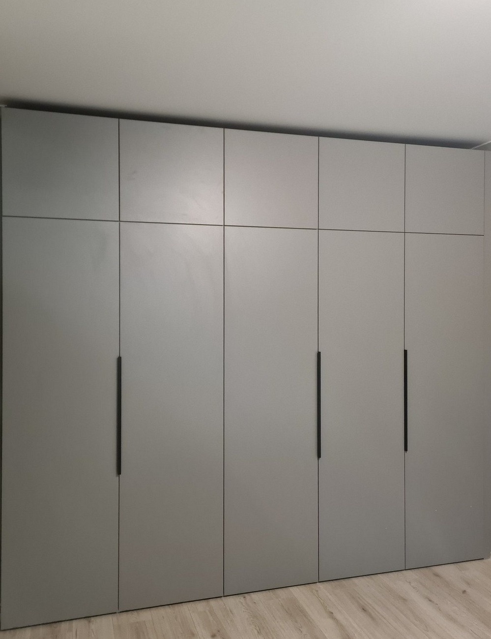 Пятидверный темно-серый шкаф во всю стену «Модель 772»
